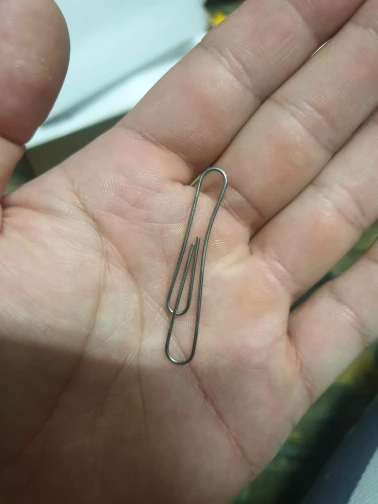 После первого сгибания пальцами скрепка поломалась - нагрев не выправляет ее в исходную форму.