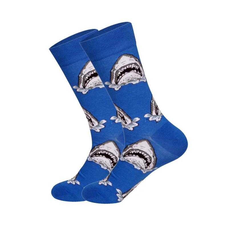 1 пара Красочные чесаный хлопковые носки с изображением акулы с рисунком черепа длинная трубка счастливые Для мужчин носки для девочек Новинка скейтборд с круглым Повседневное Crazy носки