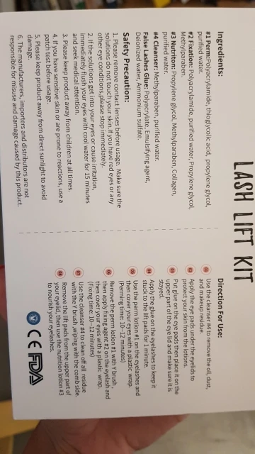 Доставили очень быстро. Если честно, я ожидала эффекта как в салоне, но не такого редузьтаьа нет. Звёзд не снимаю, потому что не понятно, это составы не очень или потому что я делала сама себе и первый раз. Сравнить не с чем. Загиб не получился совсем, какие были ресницы, такие и остались. Но эффект безусловно есть. И ещё не стала красить ресницы, возможно, с краской было бы ещё лучше. Буду пробовать на ком нибудь и дополню отзыв. Радует, что в комплекте есть все, что нужно. Инструкция на английском, но это легко решается переводом с фотографии. Да и в интернете есть куча видео.