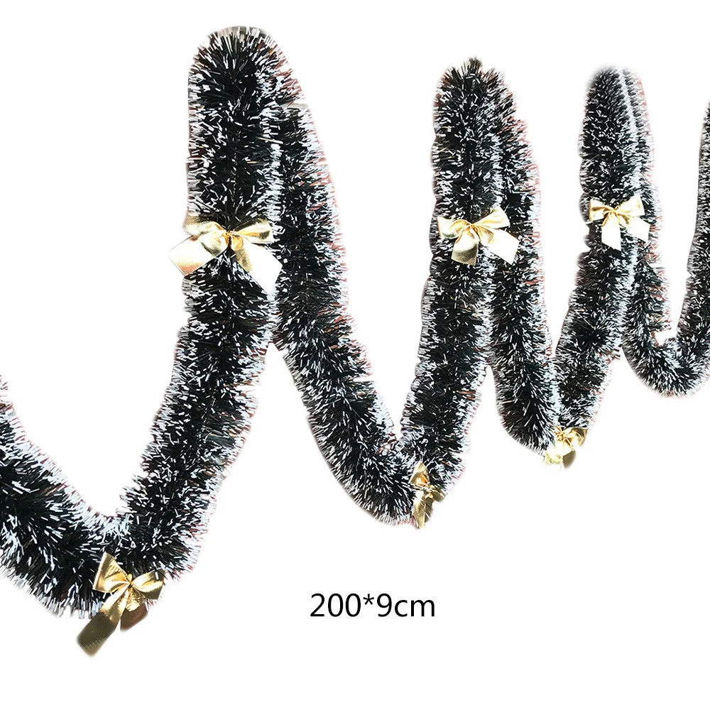 2 м Рождественская гирлянда из мишуры, вечерние гирлянды из сосны с зеленой лентой, украшение на Рождество
