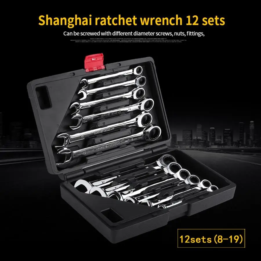 Набор гаечных ключей с трещоткой, 8-19 мм, набор гаечных ключей для ремонта гаража, автомобильные аксессуары