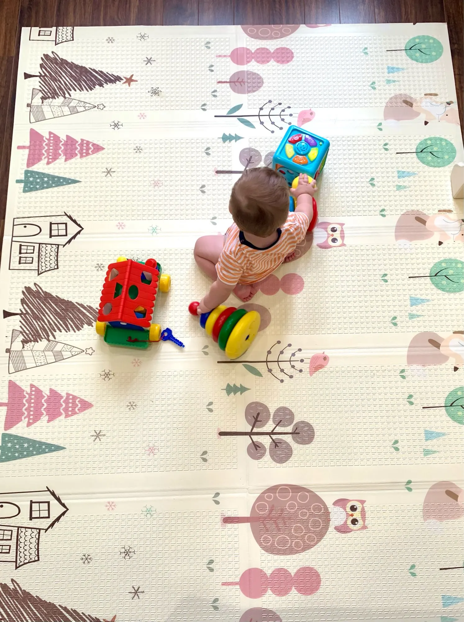 Коврик хороший. Большой, тёплый, с милыми рисунками и нежными цветами. То что надо для малыша, который ползает. В сложенном виде занимает мало места. Доставка быстрая. Покупкой довольна, рекомендую.
