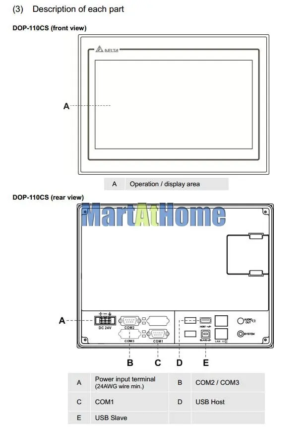 Стандарт HMI оснащен 2 + COM портами для удовлетворения большинства требований заказчика. Стандартный тип Ethernet предлагает порт Ethernet для быстрого соединения с другим оборудованием.