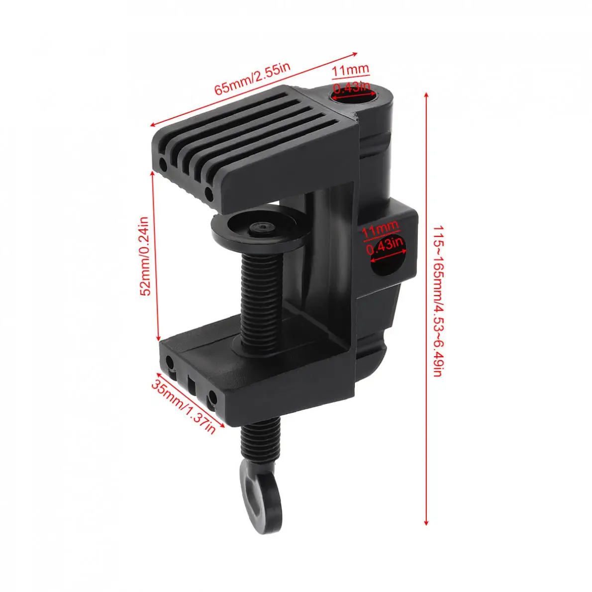 Покупал крепление ради использования под углом 90 градусов, но это полный провал. Если при вертикальном положении винта он нормально держится на столешнице, то при боковом креплении на вертикальную поверхность при установке в струбцину лампы или крепления для телефона - оно постоянно падает. Нейлоновый винт не обеспечивает такого усилия, чтобы прижать струбцину, при затягивании мягкая пластиковая резьба срывается