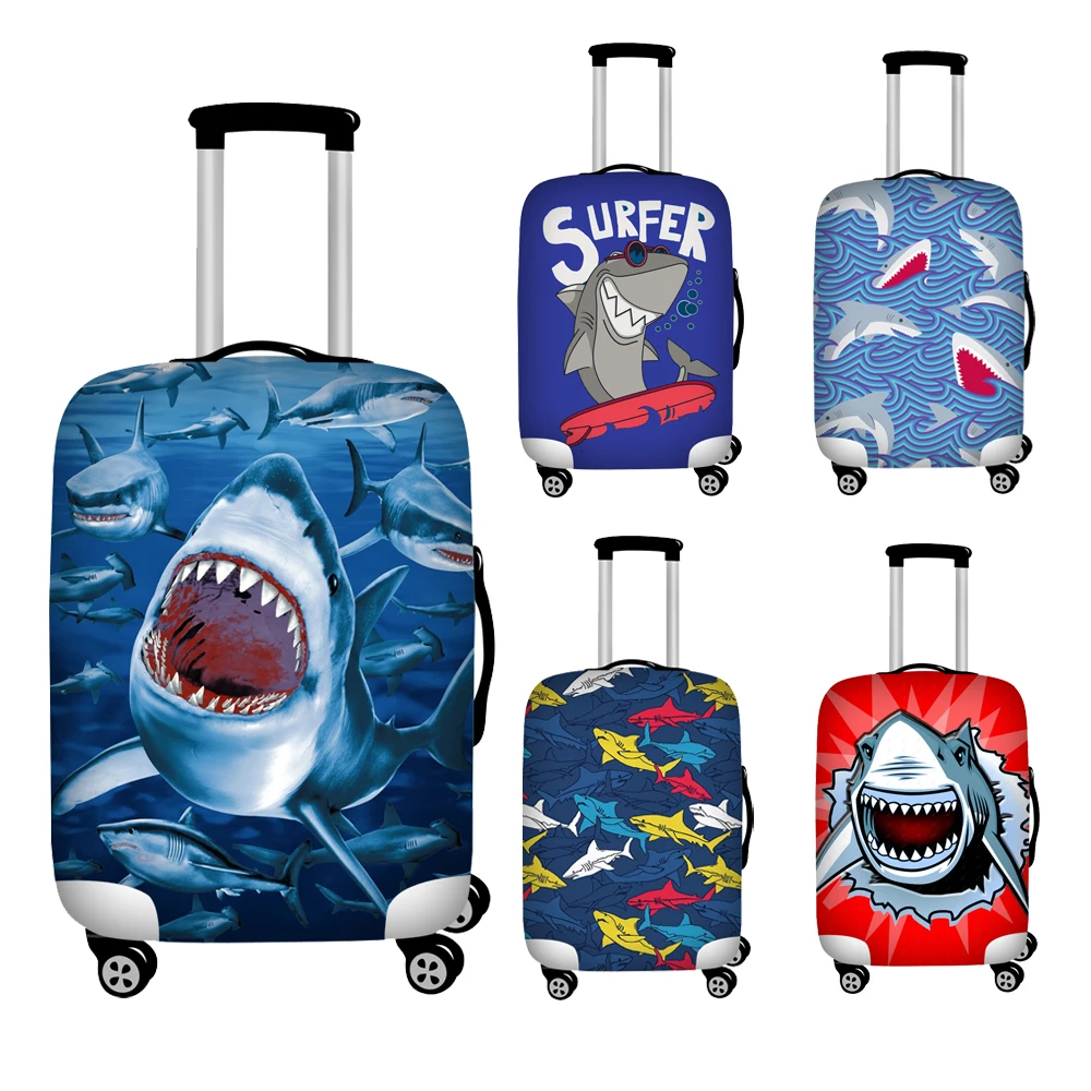 Дорожная сумка на колесиках с принтом акулы, плотный эластичный чехол для чемодана