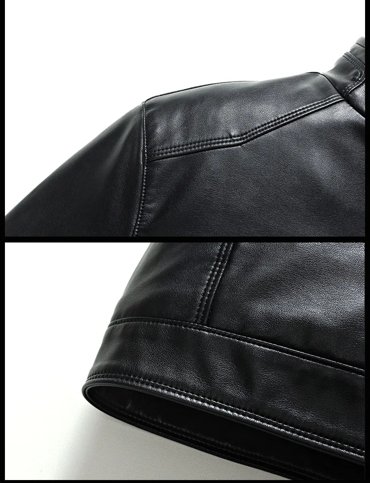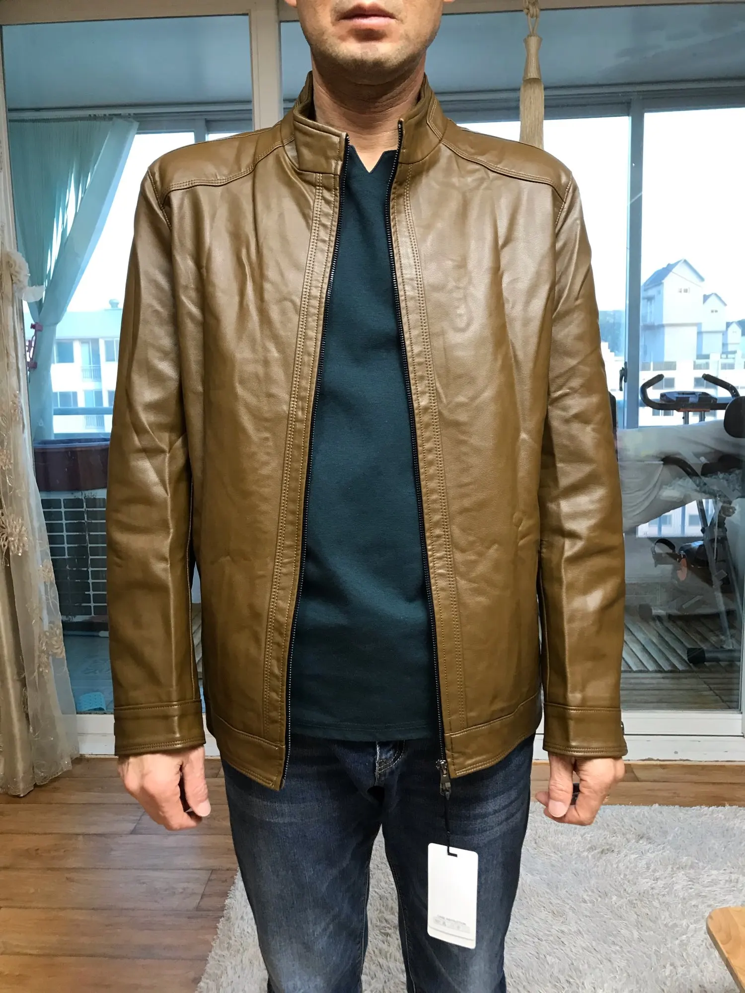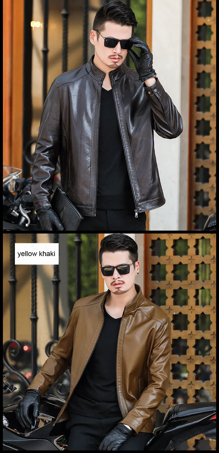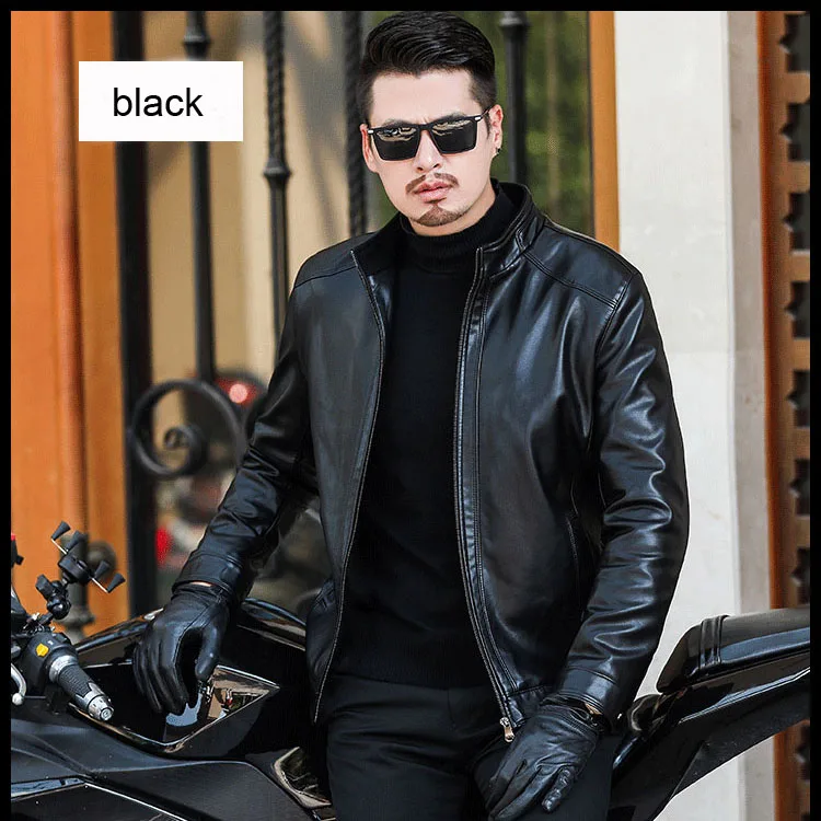 Мужская кожаная куртка с молнией, размеры до 5XL, 6XL, 7XL