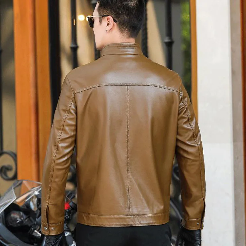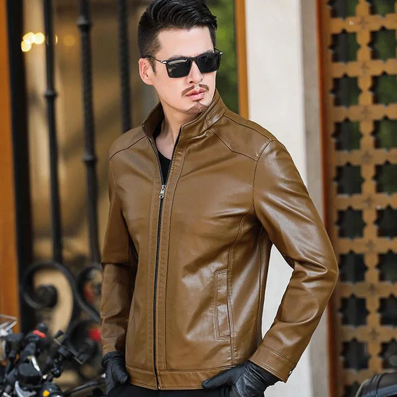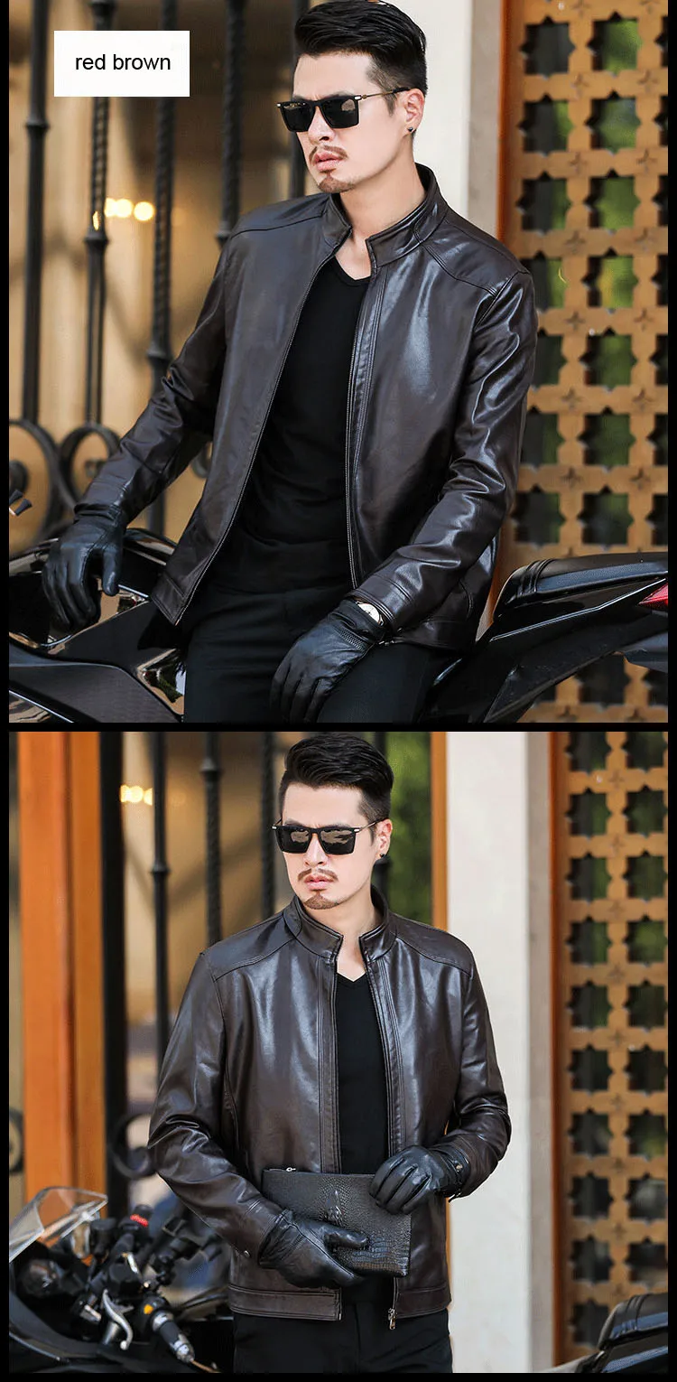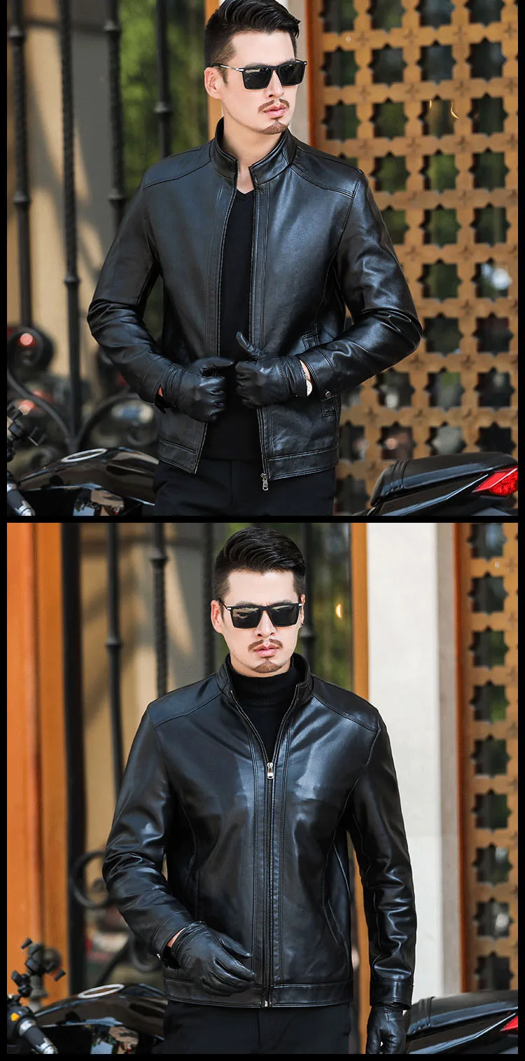 Мужская кожаная куртка с молнией, размеры до 5XL, 6XL, 7XL
