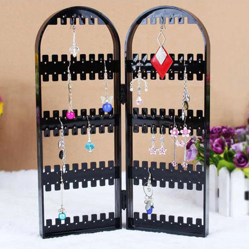 120 Holes Folding Earring Holder Bracelet Necklace Display Stand ScreenWhite 120/180/240/360 holes Plastic Earrings Studs Display Rack Folding Screen Earring Jewelry Display Stand Holder Storage Box