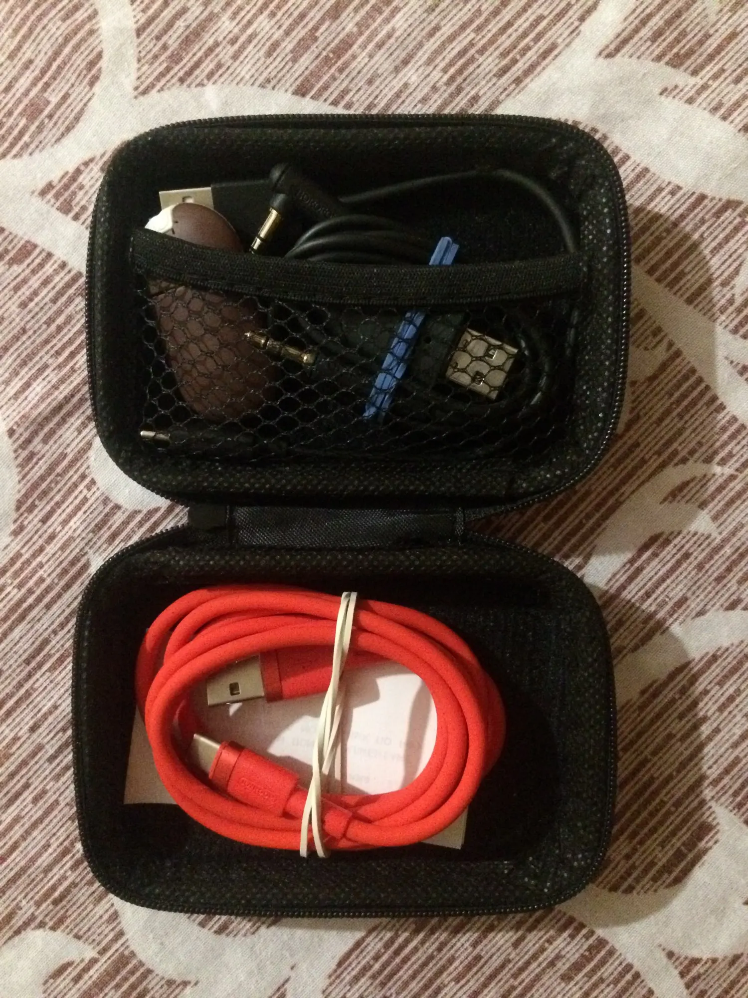 Товар был задержан на несколько дней, но сам продукт находится в очень хорошем состоянии. Не повреждает изделие и не повреждает цвет. Он немного меньше, чем я думал. Материал действительно хороший и твердый. В общем, я бы порекомендовал его тем, кто хочет взять либо зарядное устройство, наушники или другие мелкие детали.