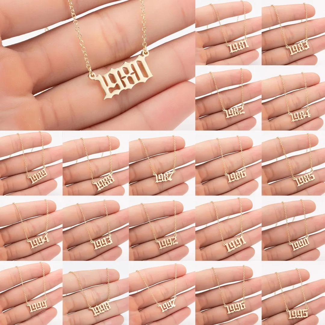 Модное персонализированное старинное английское ожерелье на цепочке с цифрами золотого, серебряного цвета на год рождения женское ожерелье с подвеской Ювелирное Украшение подарок