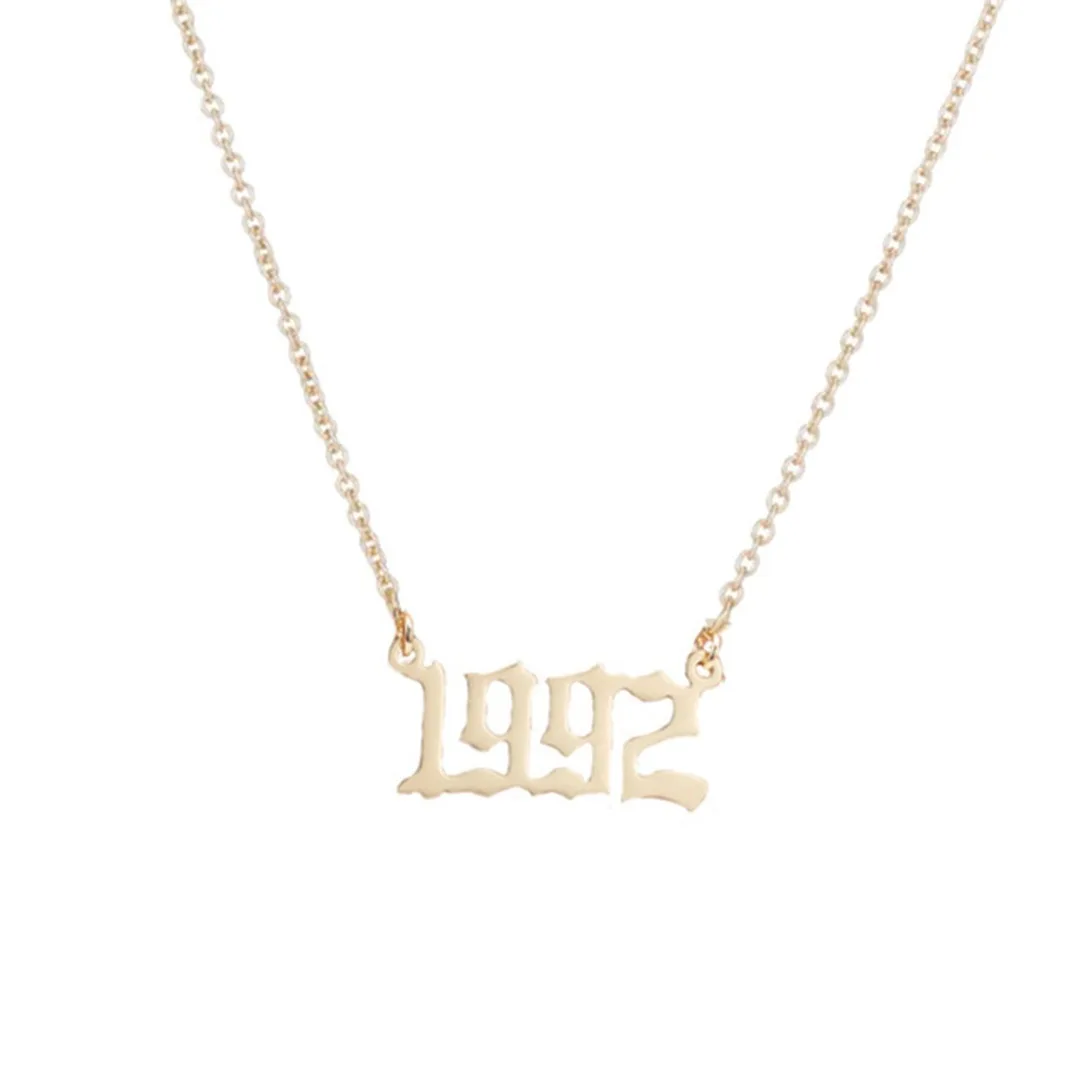 Номер моделиbirth year necklace , Old English Number Necklace
