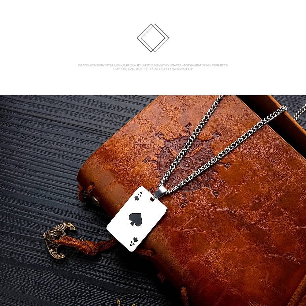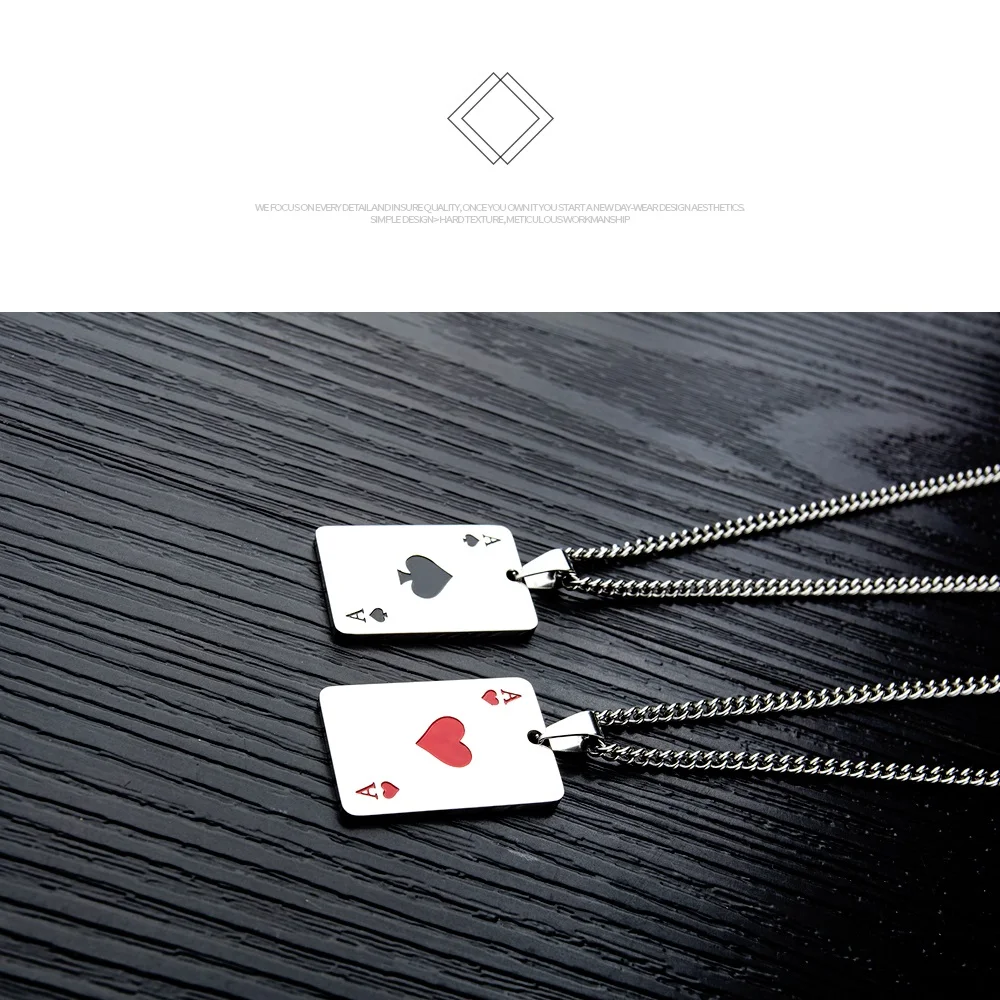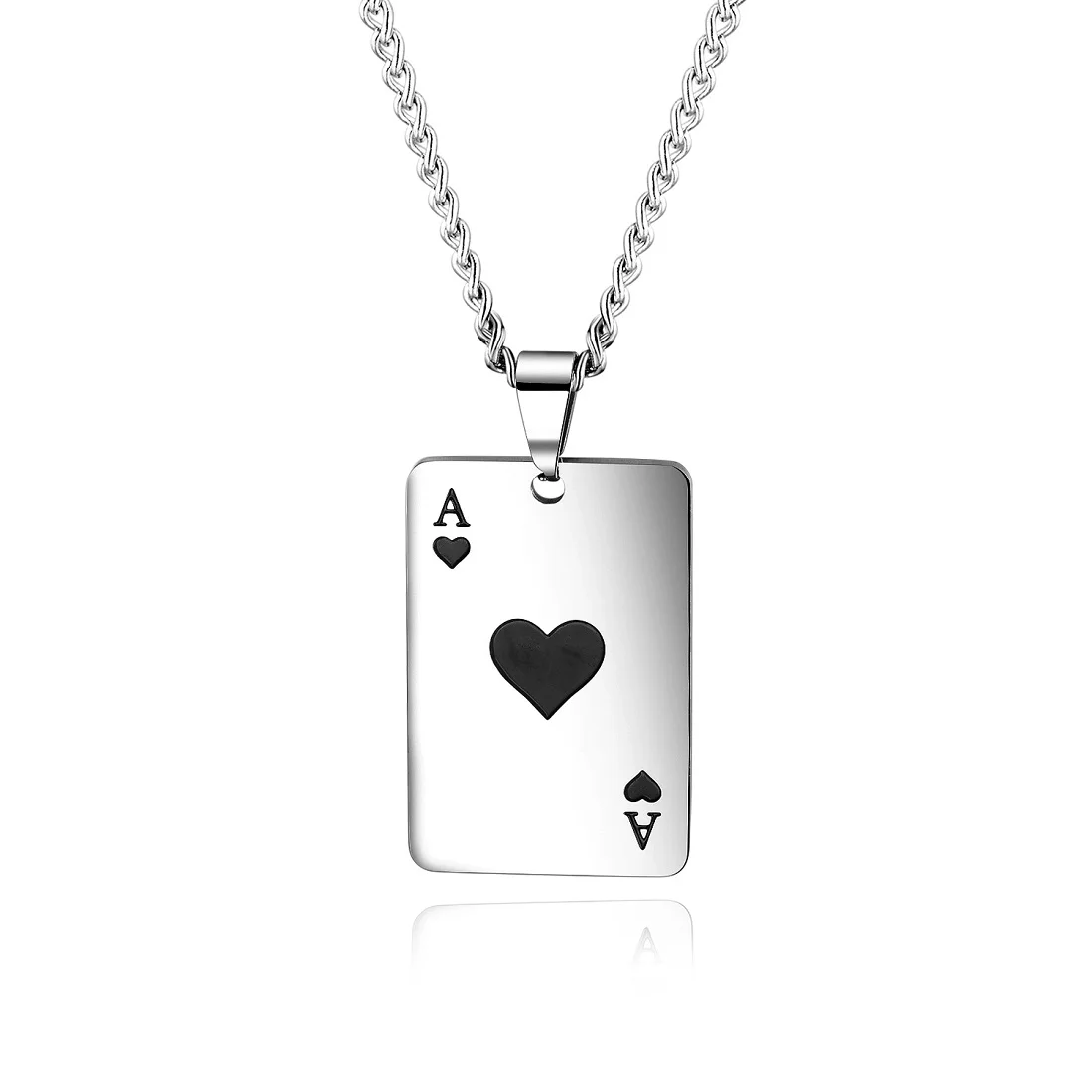 Мужское ожерелье с кулоном в виде покера, из нержавеющей стали