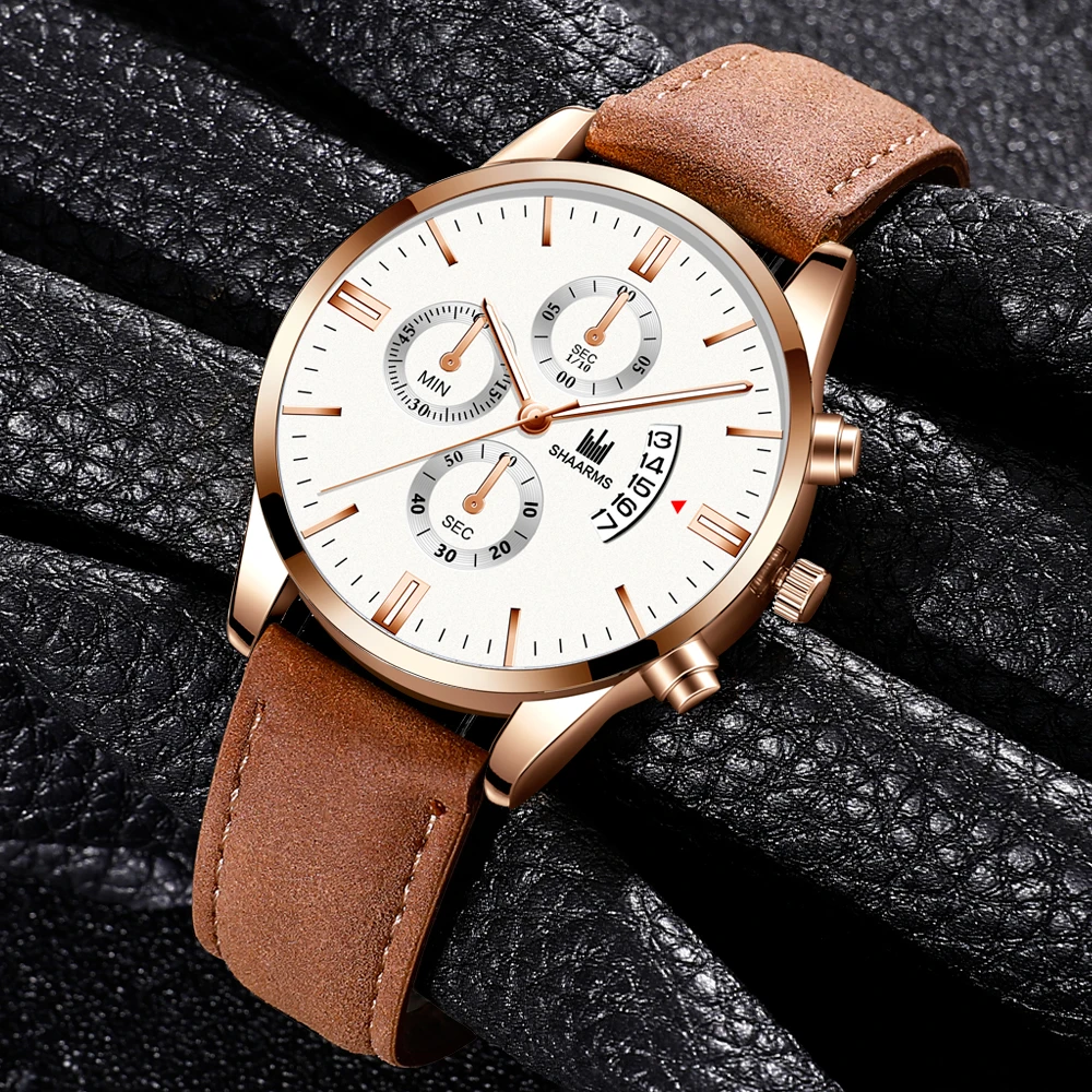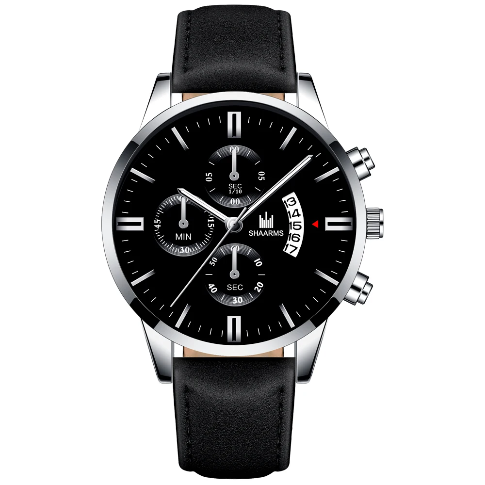 Часы мужские, из нержавеющей стали, с кожаным ремешком, кварцевые, деловые, 2019