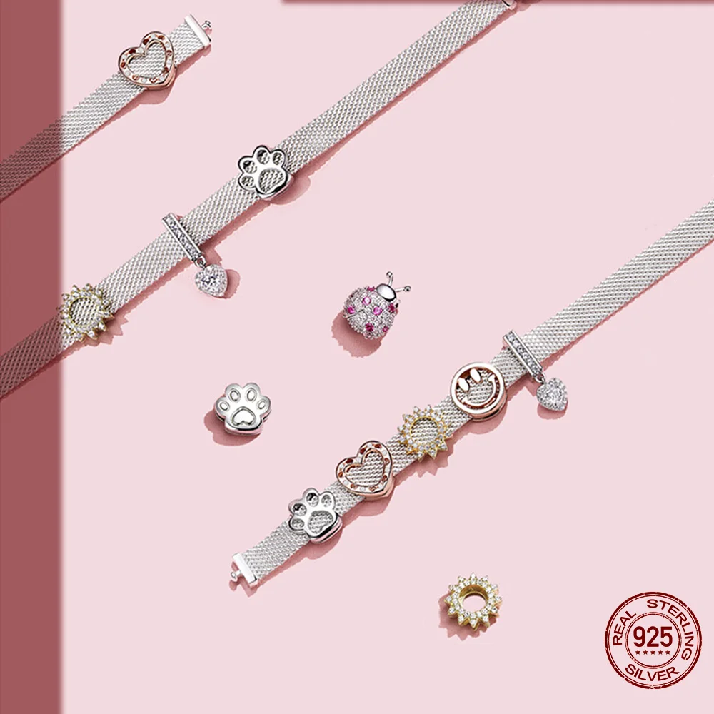 Бусины, Подвески в виде подсолнуха, божьей коровки, сердца, подходят для браслетов сделай сам, серебро 925 пробы, ювелирные изделия