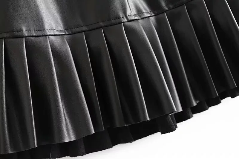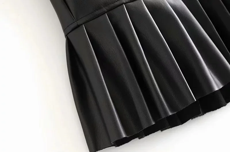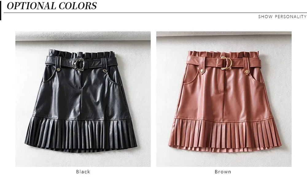 Модные повседневные женские юбки из искусственной кожи с высокой талией и пряжкой, коричневые юбки из искусственной кожи, офисные женские винтажные плиссированные юбки Zoravicky