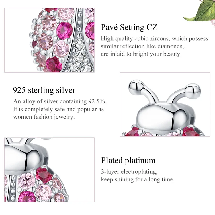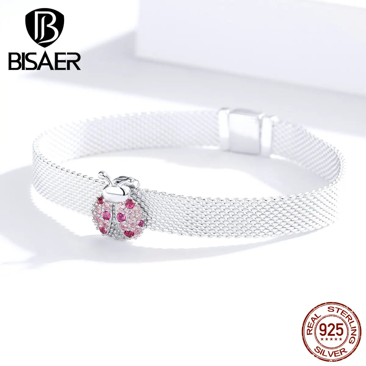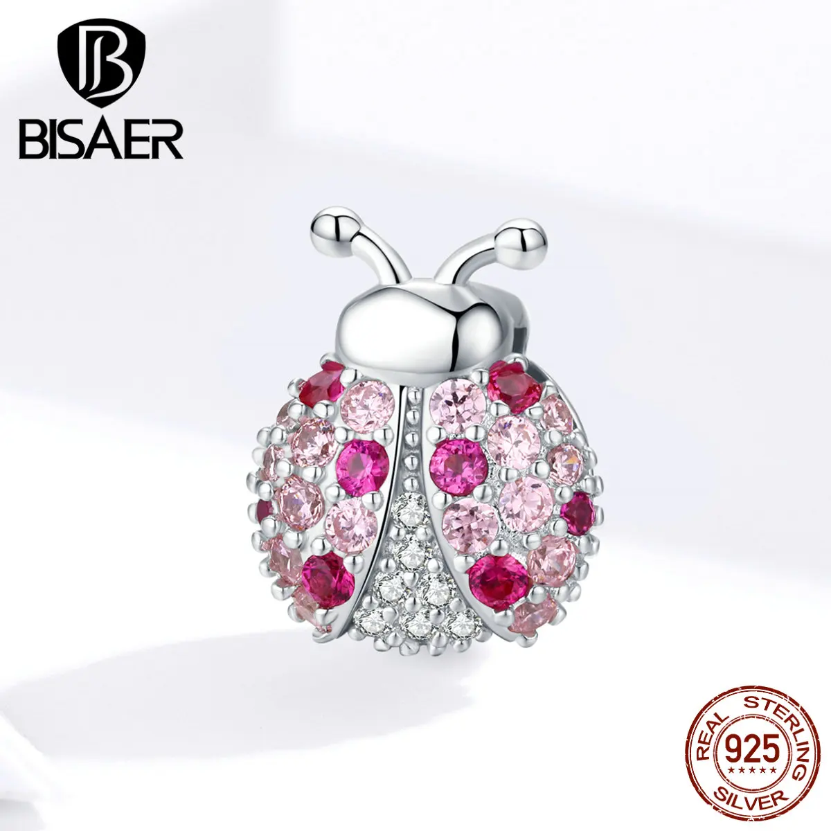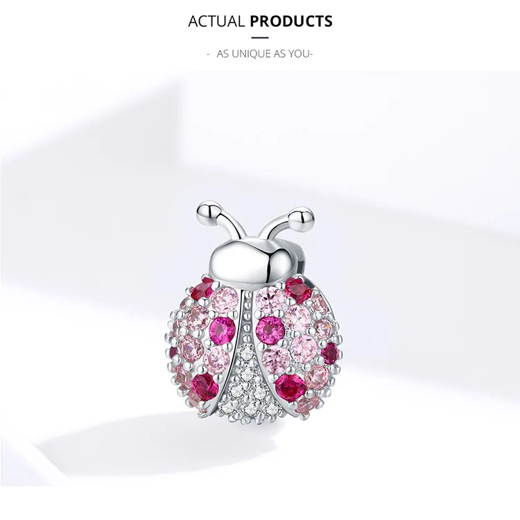 DIY бусины божья коровка бисер 925 пробы серебряные бусины божья коровка розовые фианиты серебряные браслеты 925 ювелирные изделия ECX104