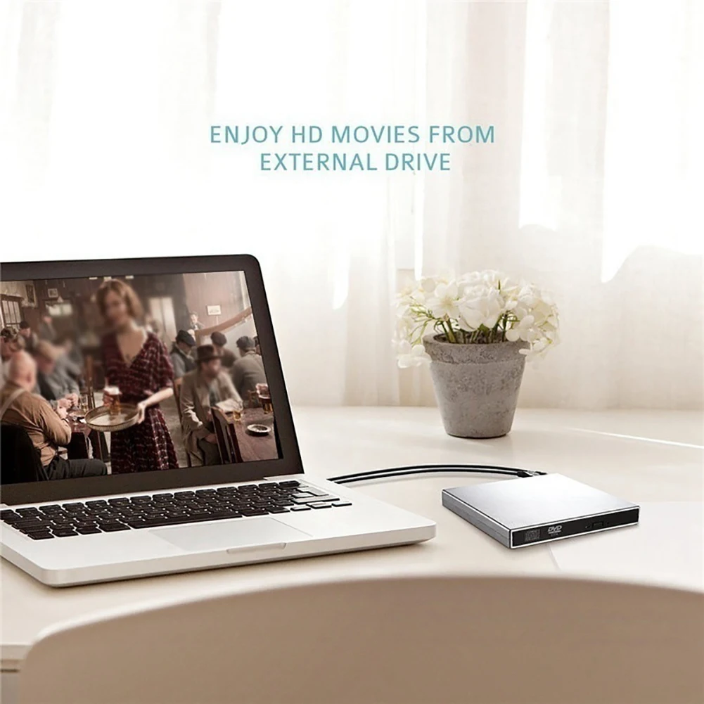 Портативный внешний DVD-привод 2,0, 1 шт., с разъемом USB DVD-ROM, с конфоркой CD-RW, высокоскоростной, подходит для ноутбуков, настольных ПК, DVD-плееров