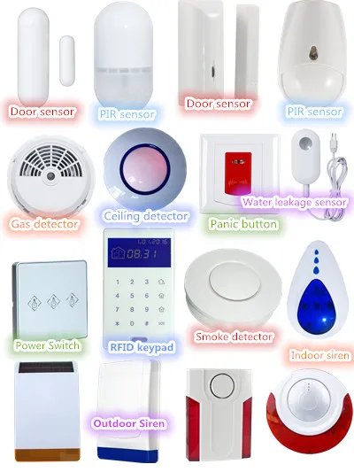 * 19. Electircal Switces control, пользователь может дистанционно включать/выключать через телефон или SMS, также можно управлять вручную через локальную панель сигнализации.