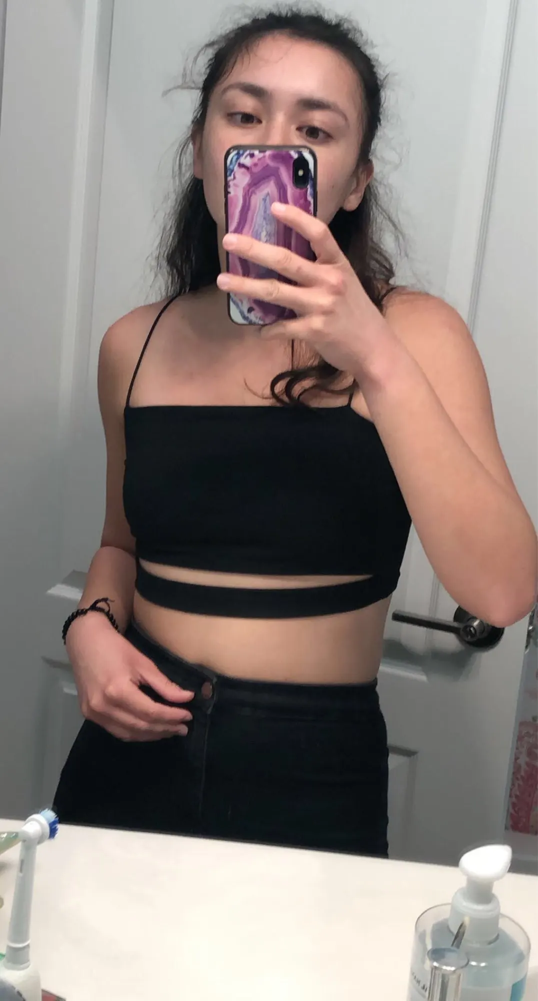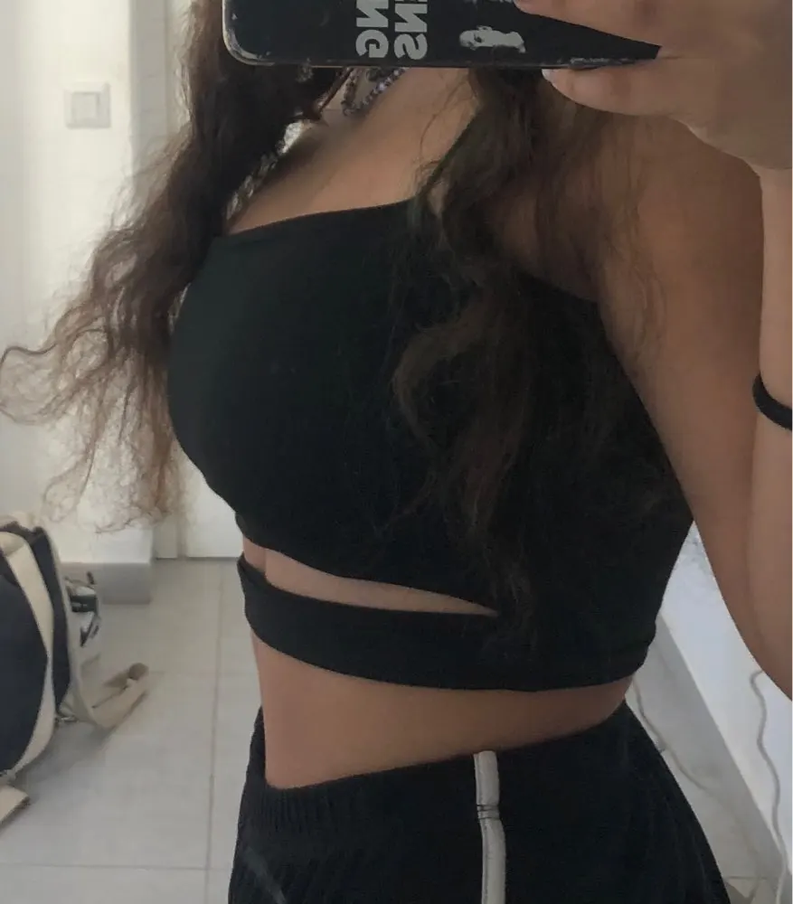 Ткань приятная и удобная, не растягивается. Это немного непропорционально. Нижняя лента невероятно свободная, но верх плотно прилегает, возможно, из-за роста груди. Если бы я был на размер больше, топ, вероятно, подходил бы идеально, но нижняя лента была бы заметно отвисшей, как сумасшедшая! Поэтому, потому что мне очень понравился топ.