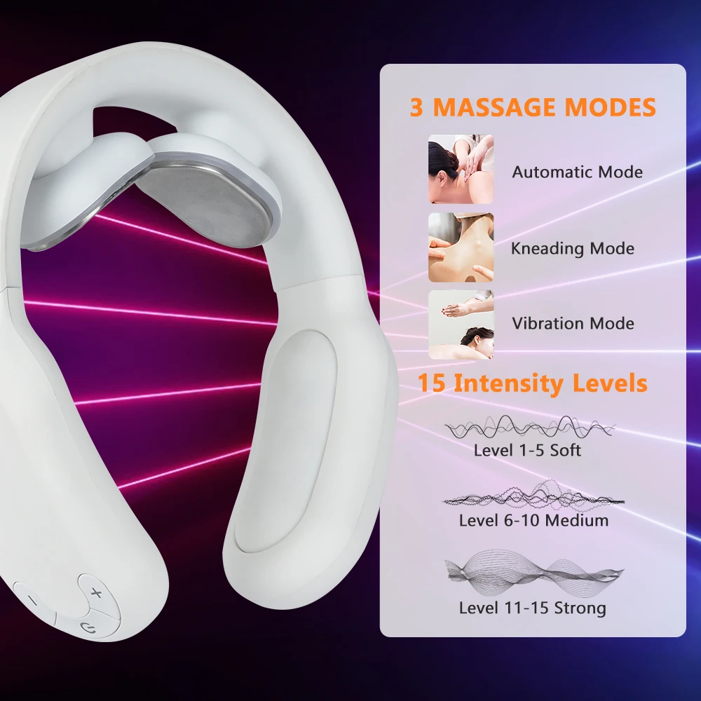 [Электрическая терапия]Обеспечивает пожизненную стимуляцию импульсного массажа для стимуляции меридианов и коллатералов и улучшения работы мышц, эффективно помогая облегчить боль и усталость вокруг шеи.