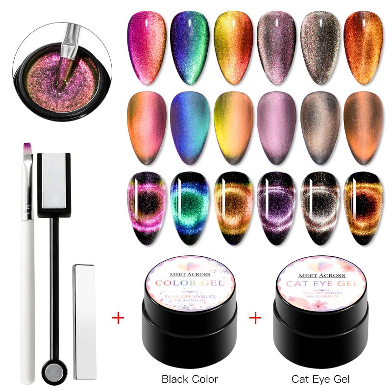 MEET ACROSS 9D Магнитный Гель-лак для глаз хамелеона кота Гель-лак для ногтей впитывающийся УФ-Гель-лак для ногтей маникюрный набор