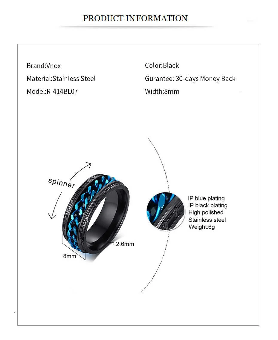 Vnox Spinner черный цепи кольцо для Для мужчин панк Титан Сталь Мет...