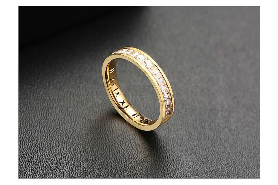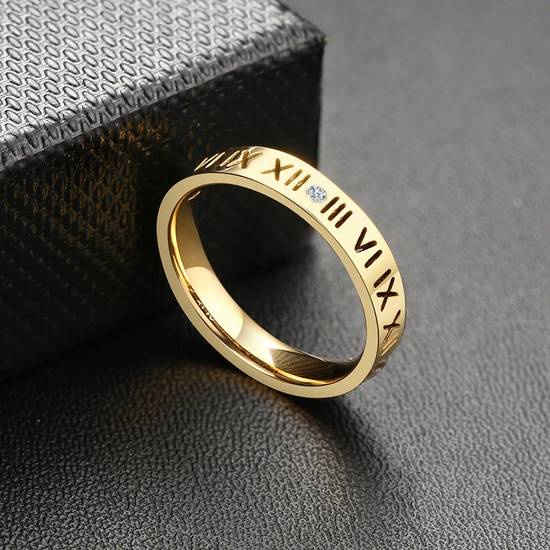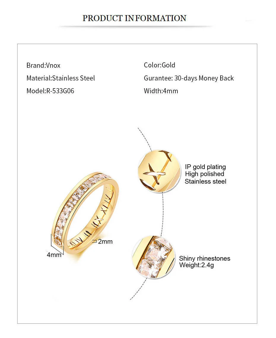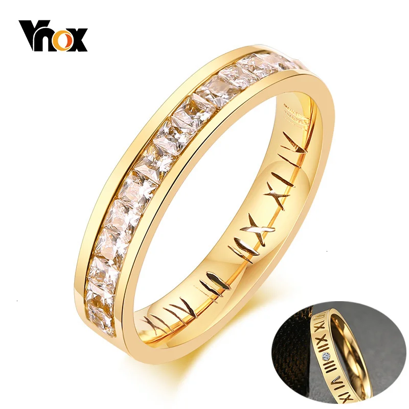 Женское Обручальное кольцо с фианитом Vnox, золотистое кольцо из нержавеющей стали с римскими цифрами, подарок для нее, ювелирные изделия