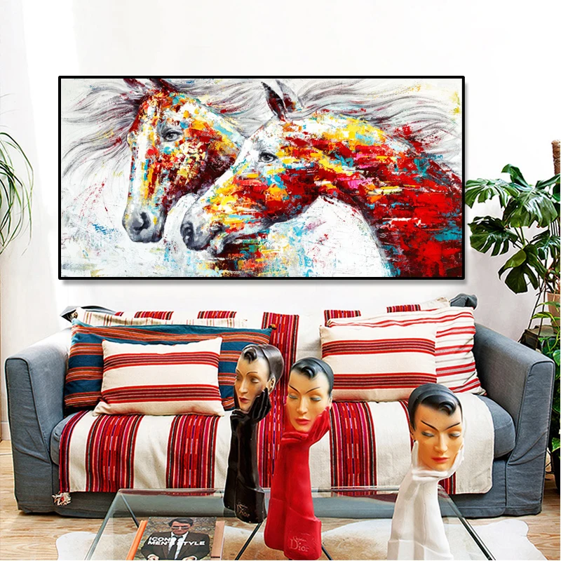 Современная Абстрактная Акварельная лошадь картина маслом на холсте...
