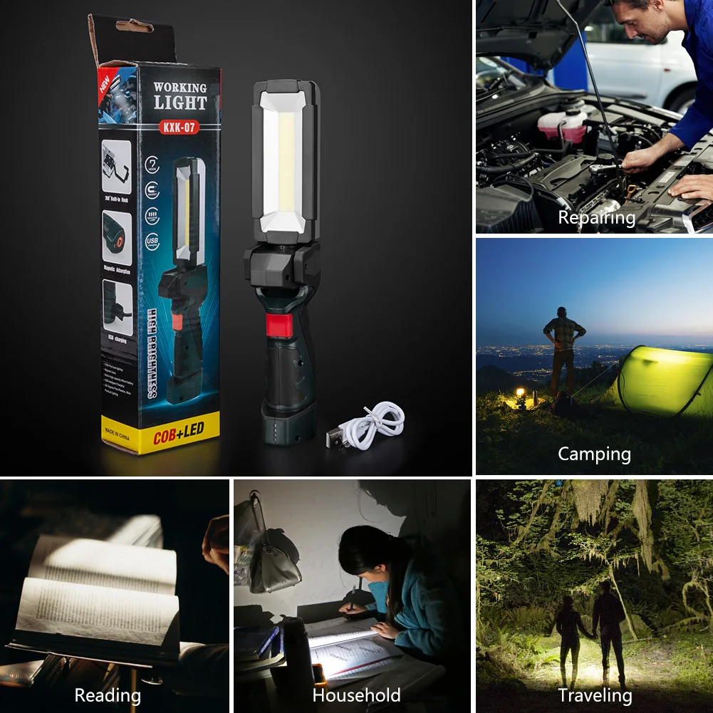 USB зарядка складной флэш-светильник Магнитный рабочий светильник COB Светодиодный фонарь с поворотным подвесным крючком встроенный аккумулятор мобильный внешний аккумулятор