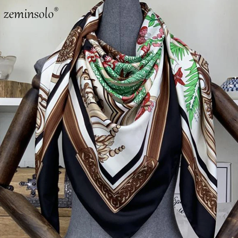 130*130 см шелковый квадратный шарф женские шарфы с принтом большой хиджаб бандана платок для леди Высокое качество шелковые шарфы шали