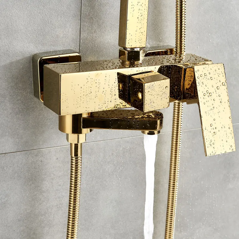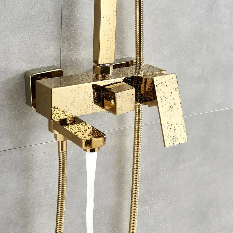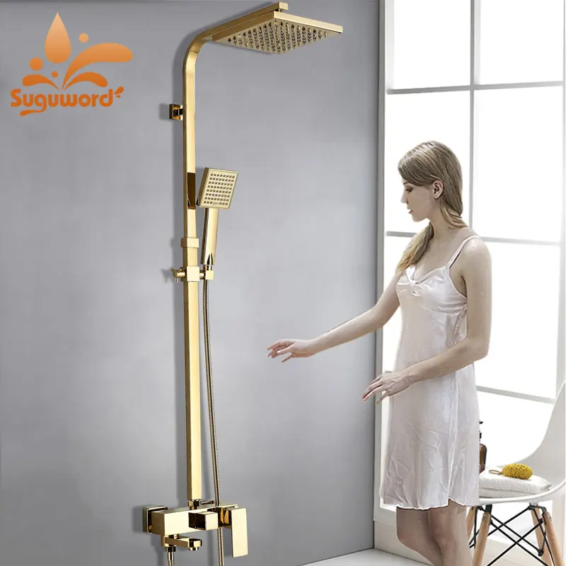 Золотой душевой комбо набор горячей холодной смеситель для душа 8 дюймов латунный душ с насадкой для душа настенные наборы для душа и ванной