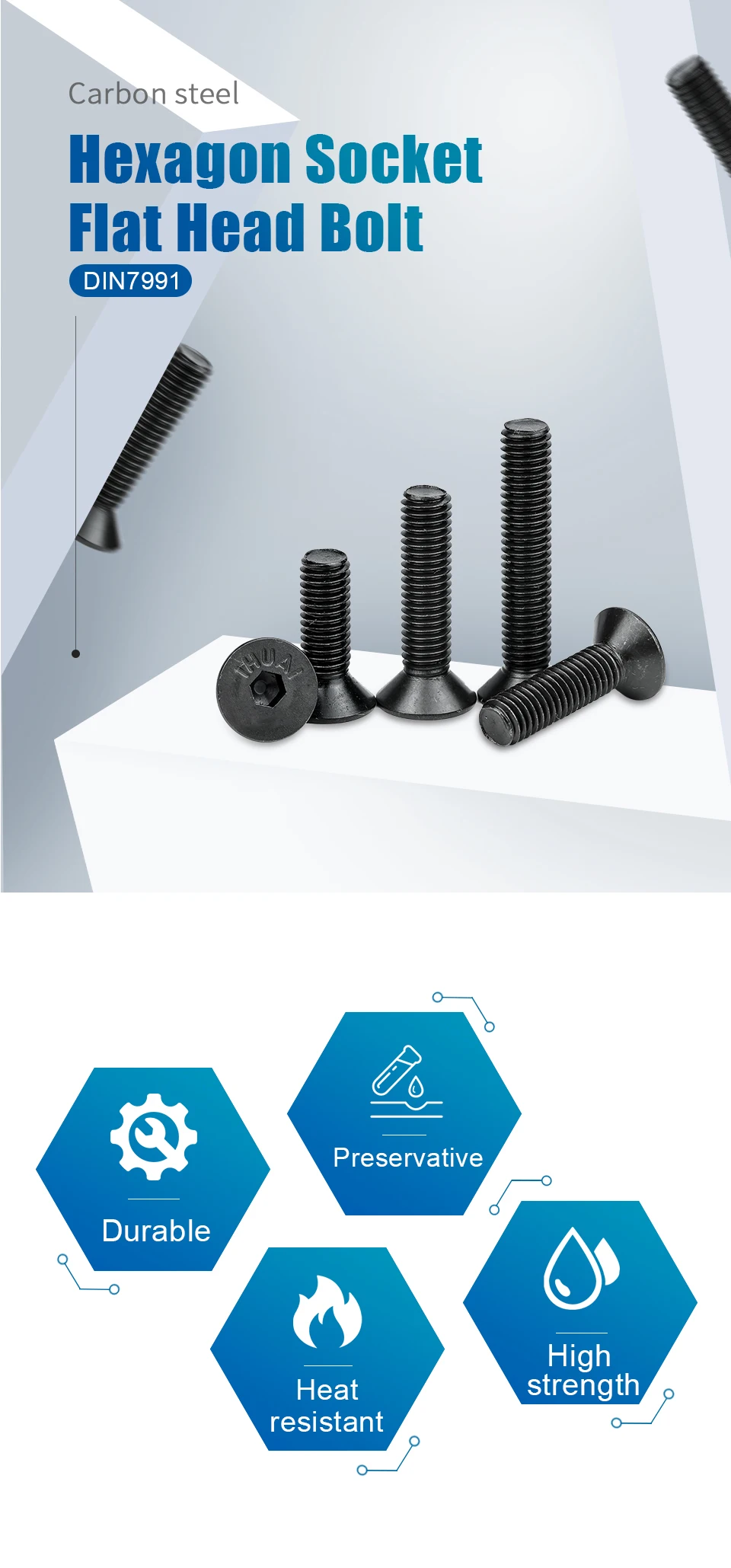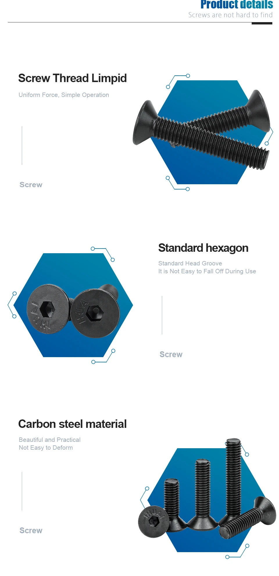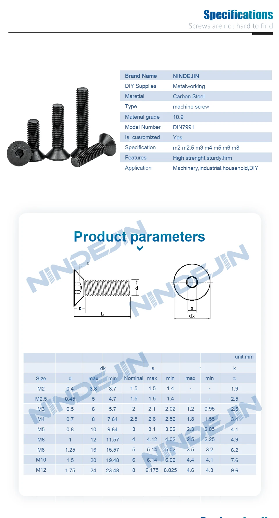 NINDEJIN Шестигранная розетка плоская потайная головка винт из углеродистой стали M2 M2.5 M3 M4 M5 M6 M8 M10 M12 Шестигранная розетка болт для машины винт