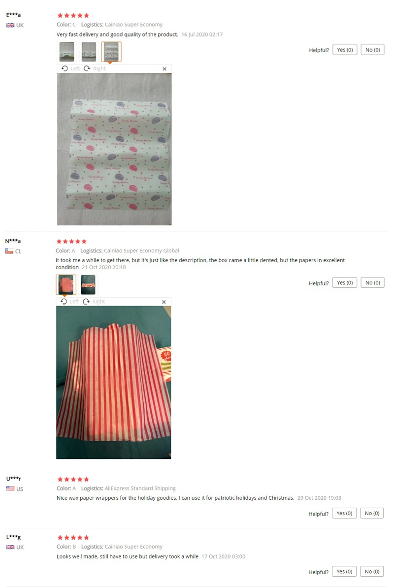 Отличное качество. Листы-это отличный размер для упаковки сэндвича.