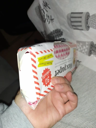 Очень милая бумага. Коробка немного отделена от zgniotllo, но никакого вреда.