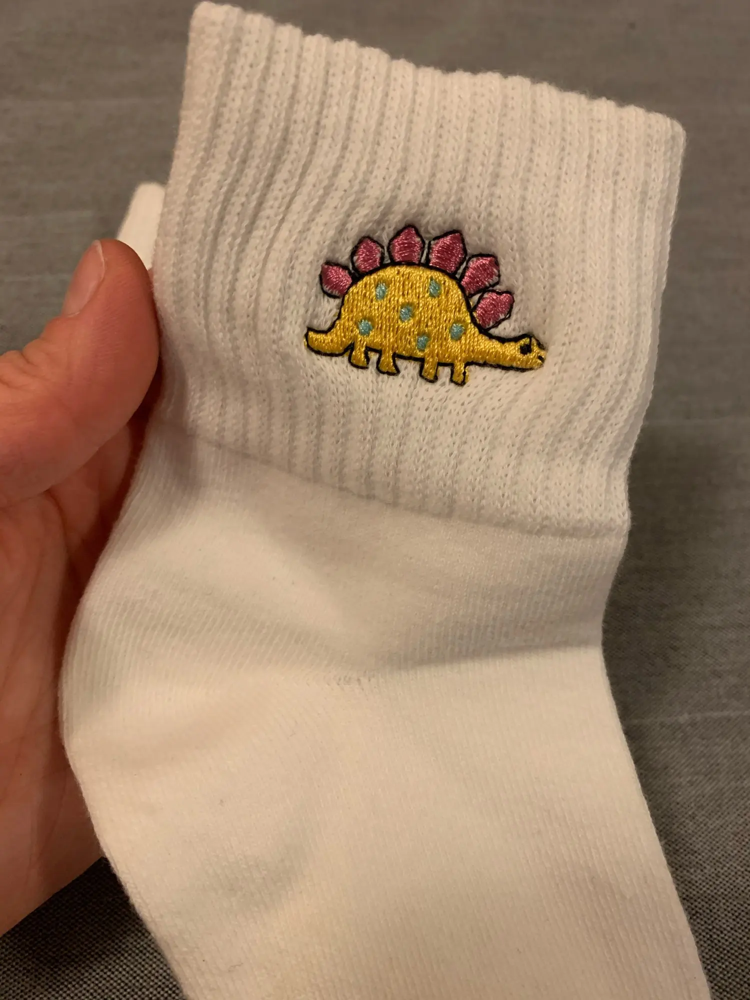 Симпатичные женские хлопковые носки с вышивкой динозавра белые винт...