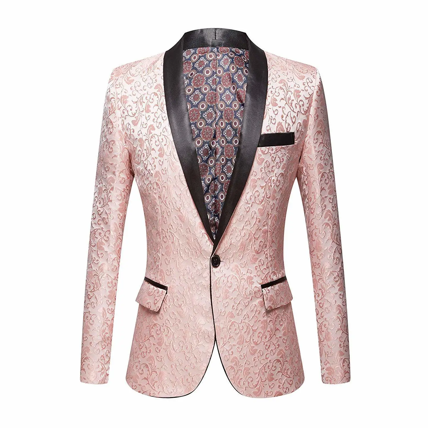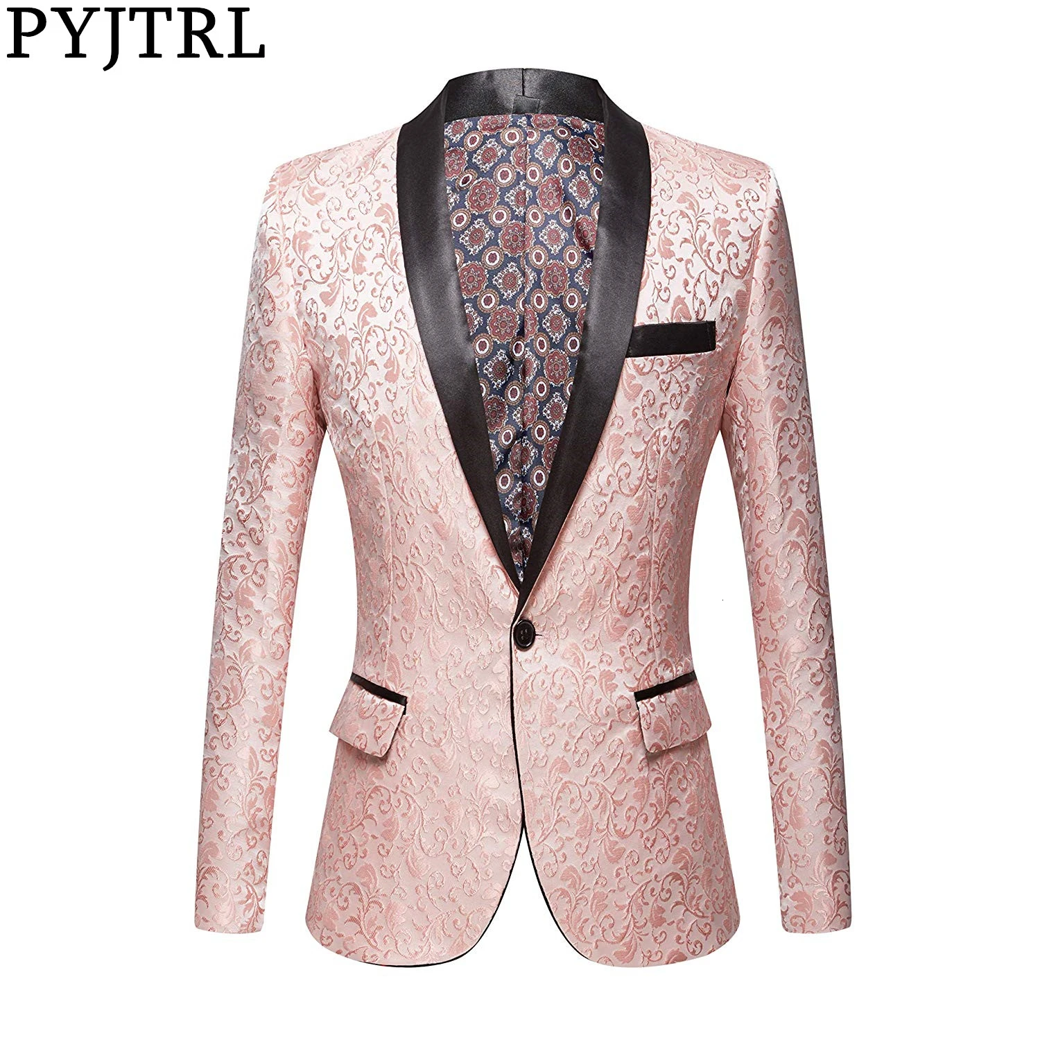 PYJTRL Для мужчин розовый королевский синий цвет бордовый жаккарда с цветочным принтом пиджак жениха на свадьбу Выходные туфли на выпускной, приталенный смокинг, нарядная вечерние ужин певцов пиджаки для женщин