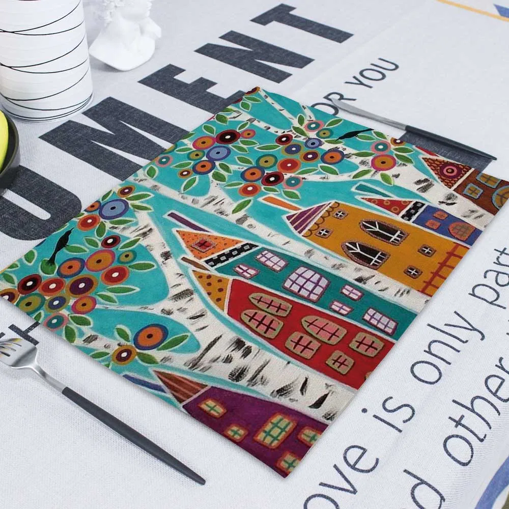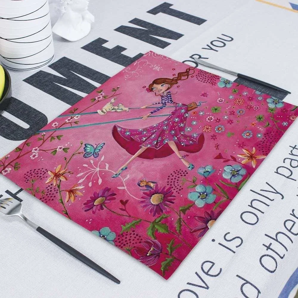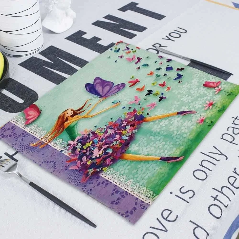 Модные столовые салфетки 42*32 см, льняные подставки для стеклянных тарелок, цветочные салфетки для девочек, американские столовые подставки под горячее предложение