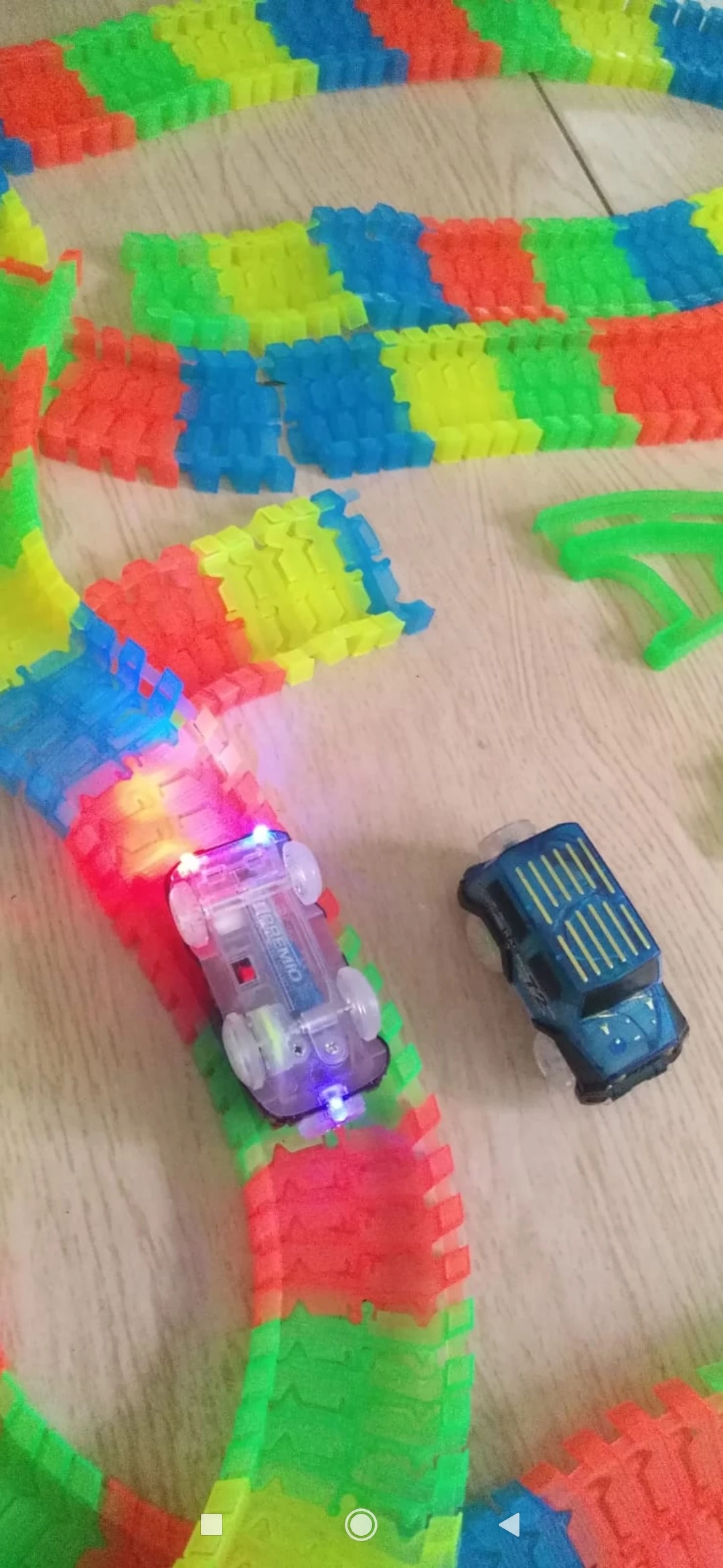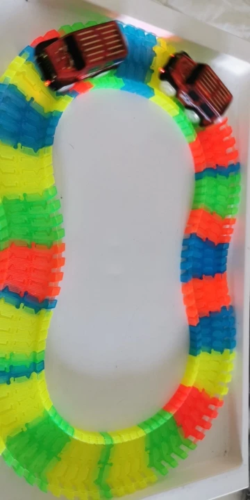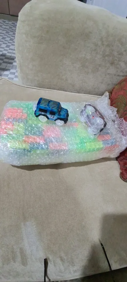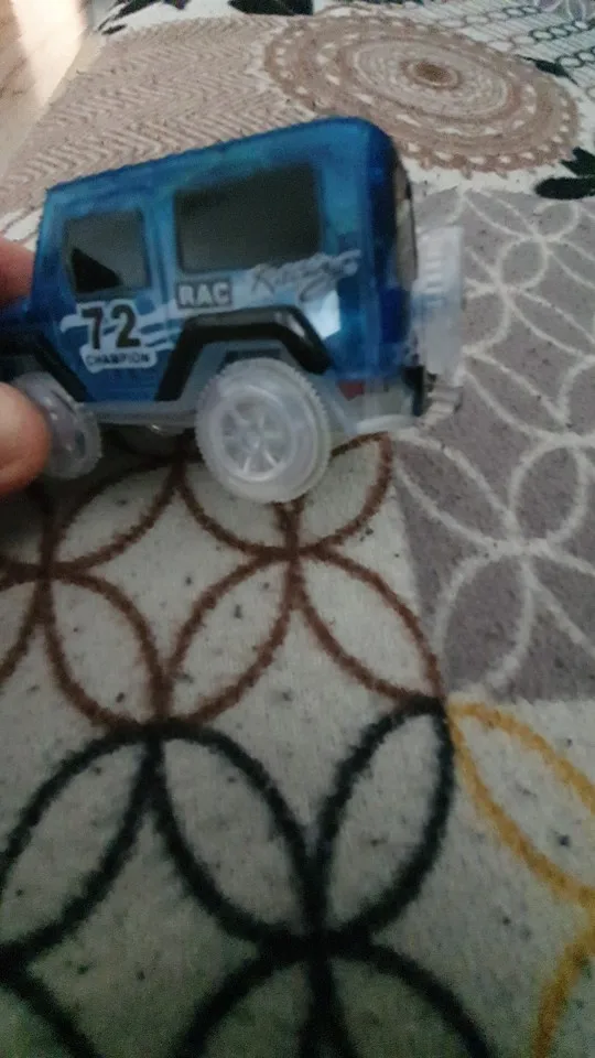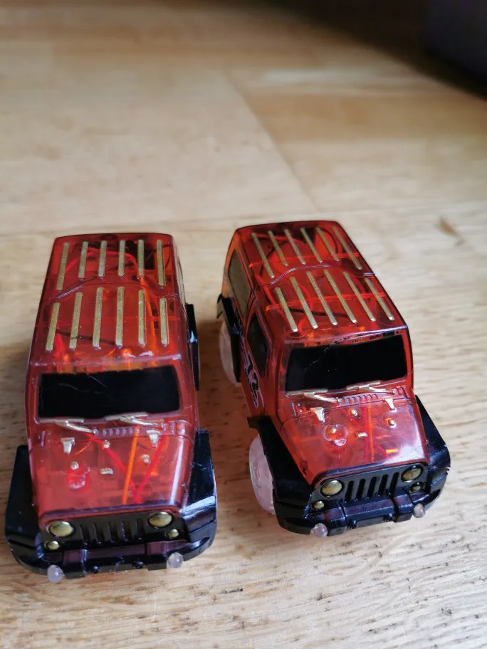 Как описано, автомобили были упакованы на один угол упаковки и один был поврежден, но работает, треки и автомобили хрупкие, в конце концов ребенок доволен