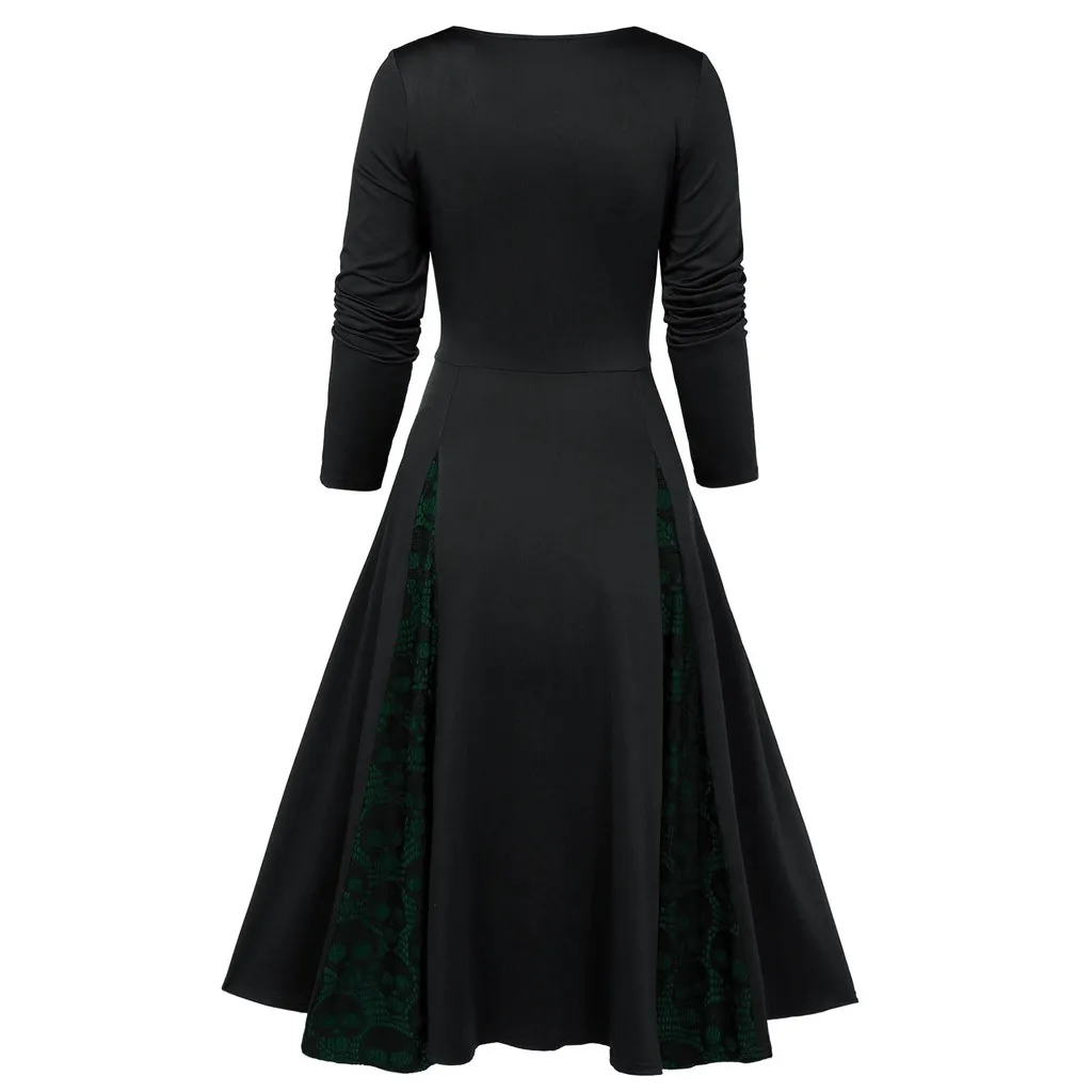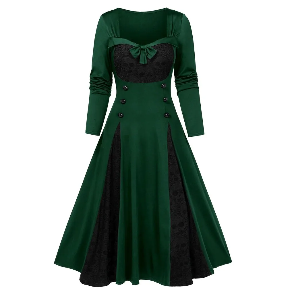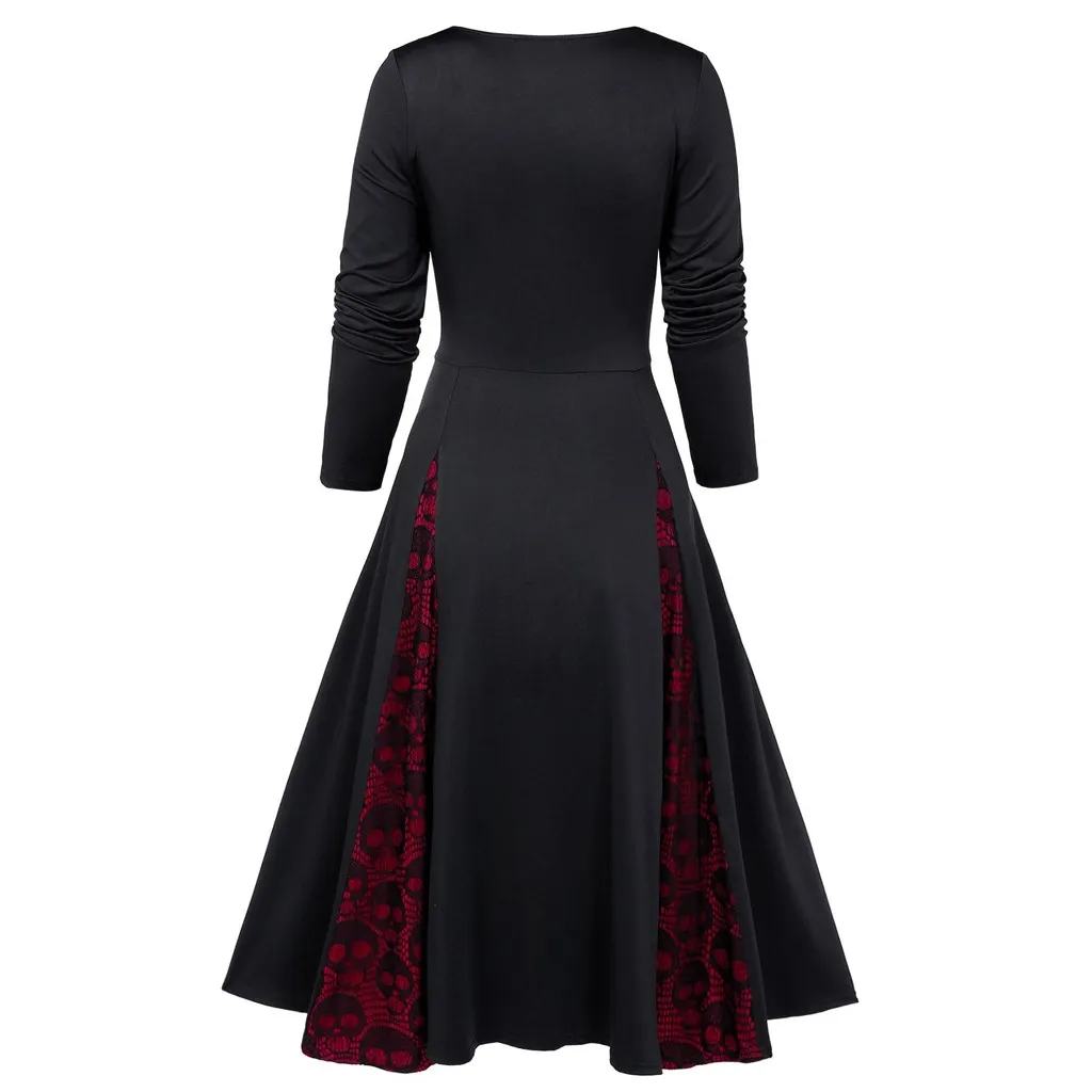 Женские костюмы для косплея на Хэллоуин, страшные костюмы ведьмы-вампира, кружевное платье с ложными пуговицами и бантом, большие размеры