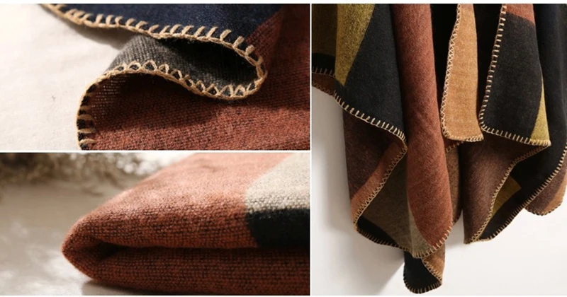 Новинка, модное зимнее Теплое повседневное пончо в клетку и накидки...