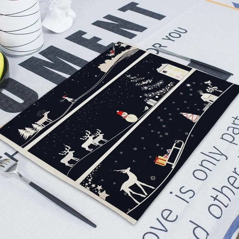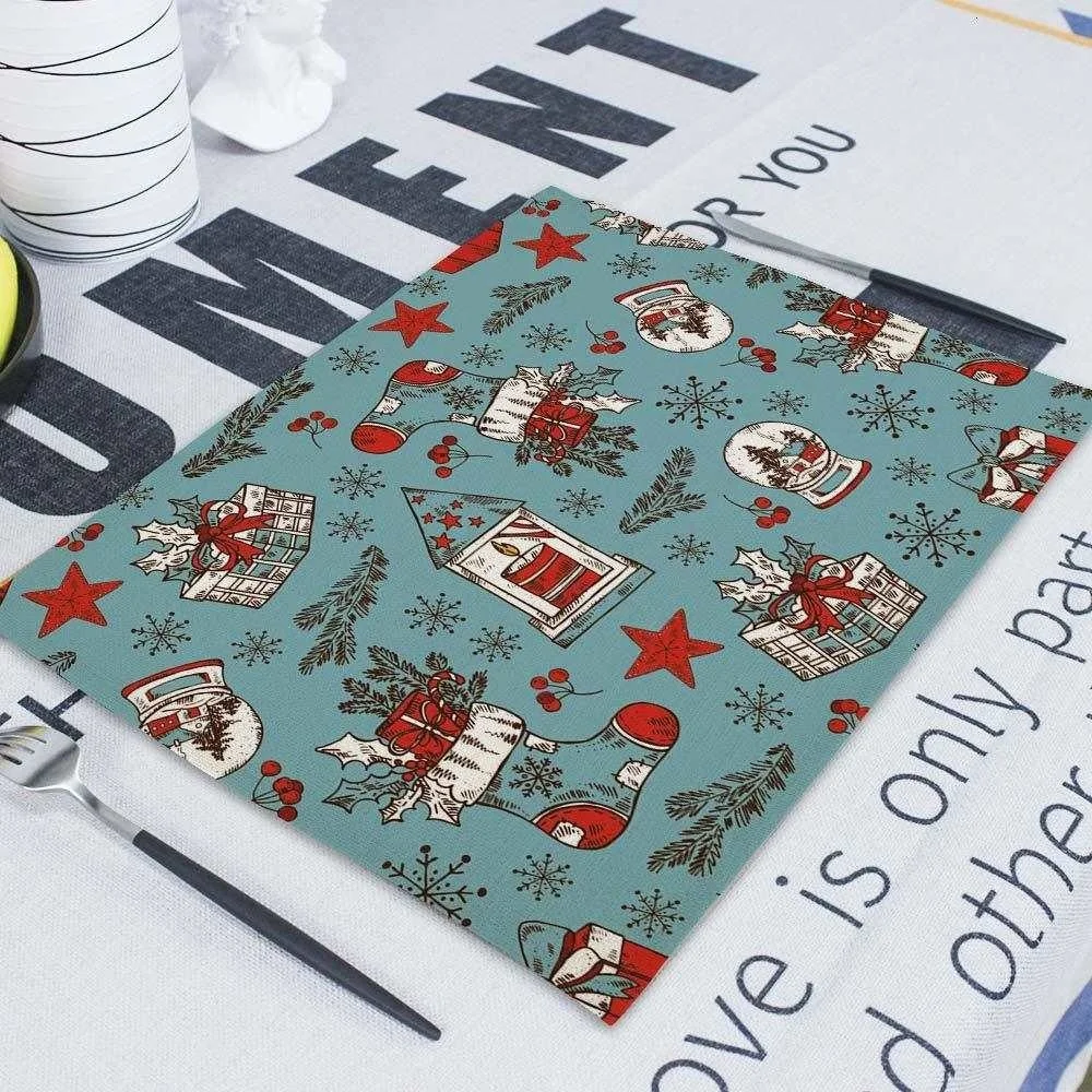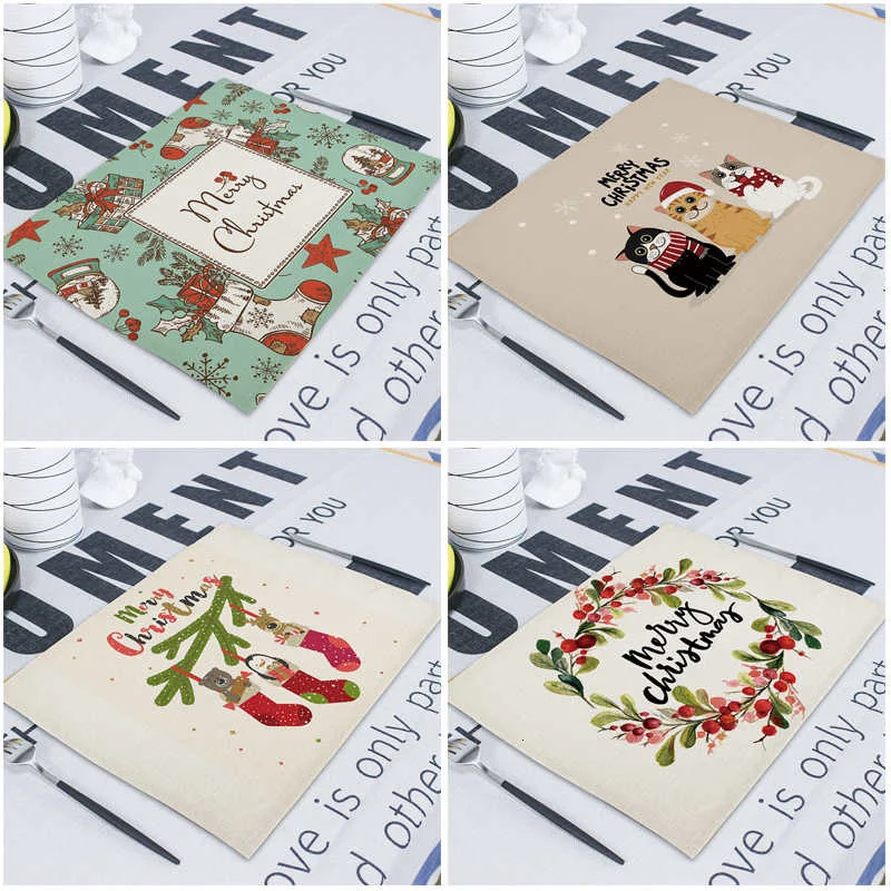 Рождественские украшения для дома, столовые приборы, салфетки для стола, индивидуальные салфетки для коврик для кухонного стола для кружек