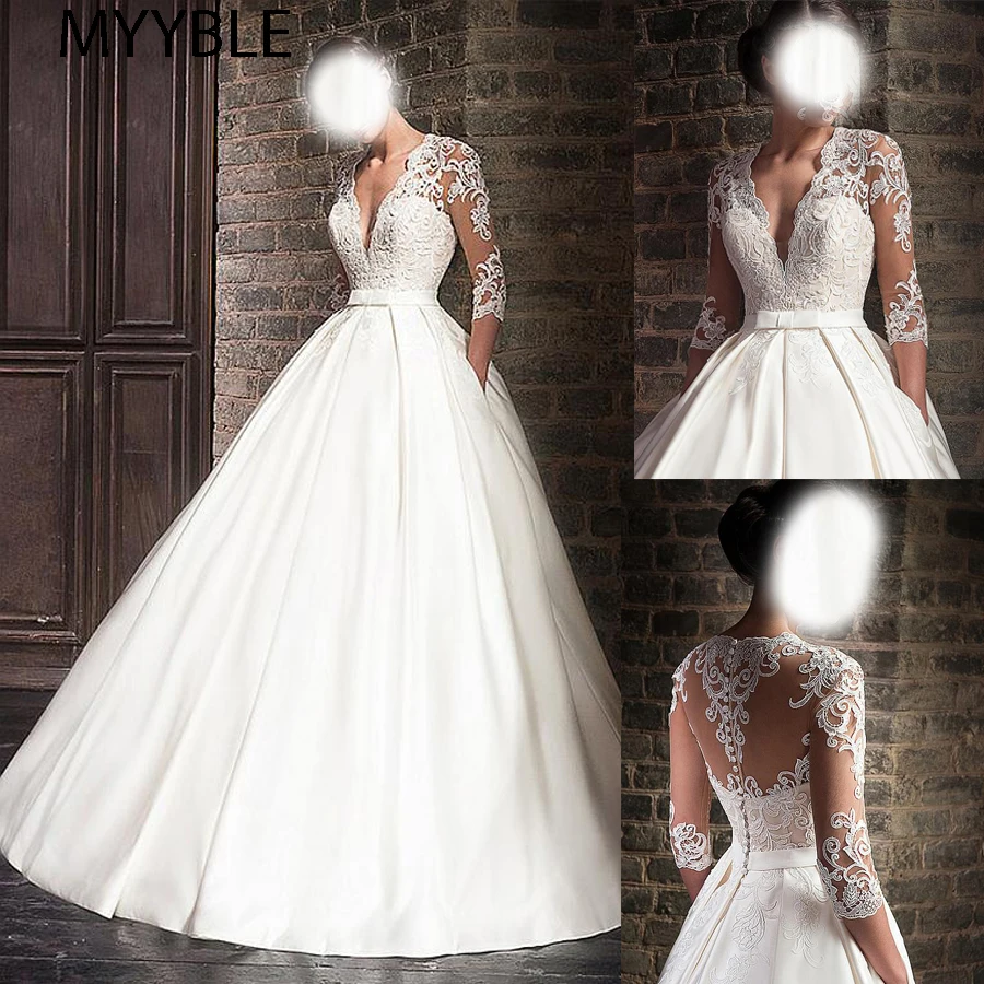 Роскошное кружевное свадебное платье MYYBLE 2021 с длинным рукавом ...