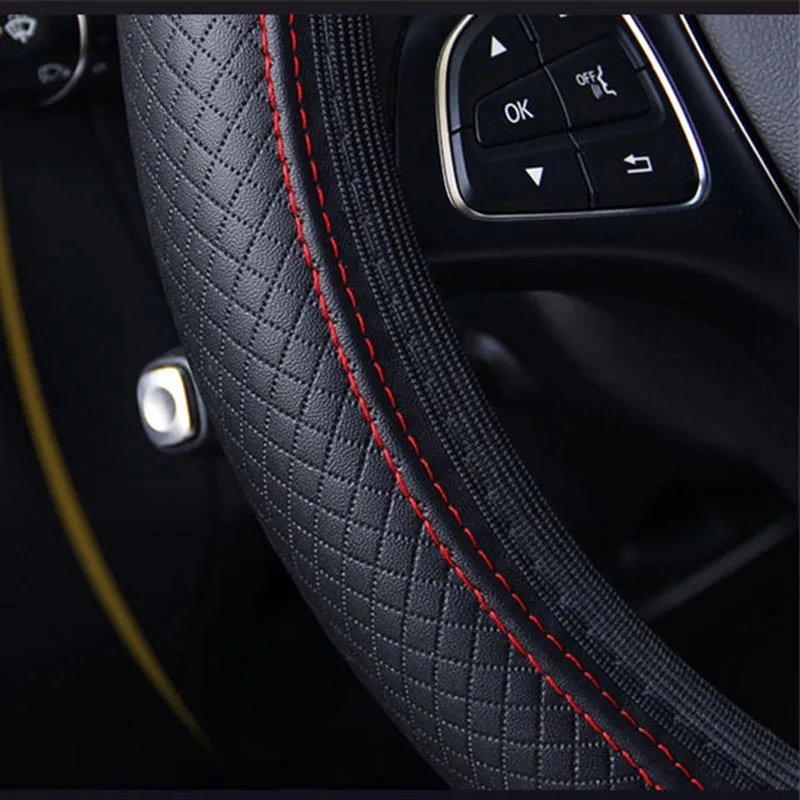 Чехол на руль автомобиля, тиснение, кожаная отделка, противоскользя...