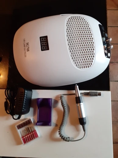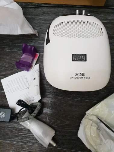 Пришла посылка быстро. Я новичёк, поняла, что фрез из комплекта не достаточно. Сам аппарат работает хорошо. Пылесос тянет, фрезер со своей задачей справляется. Очень понравилась лампа. Очень хорошо сушит, таймер на ней работает, гель лак держится удже 2 недели, не деформировался, не откололся. К покупке рекомендую.