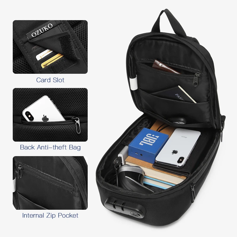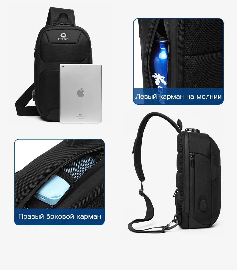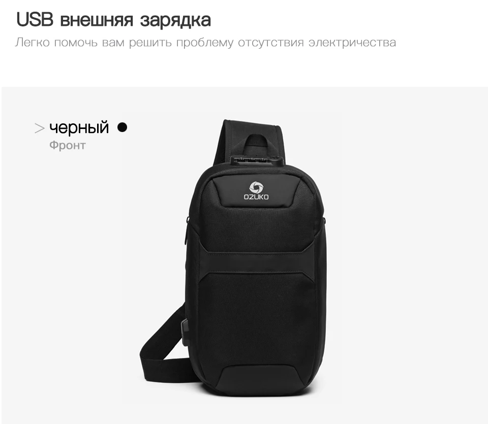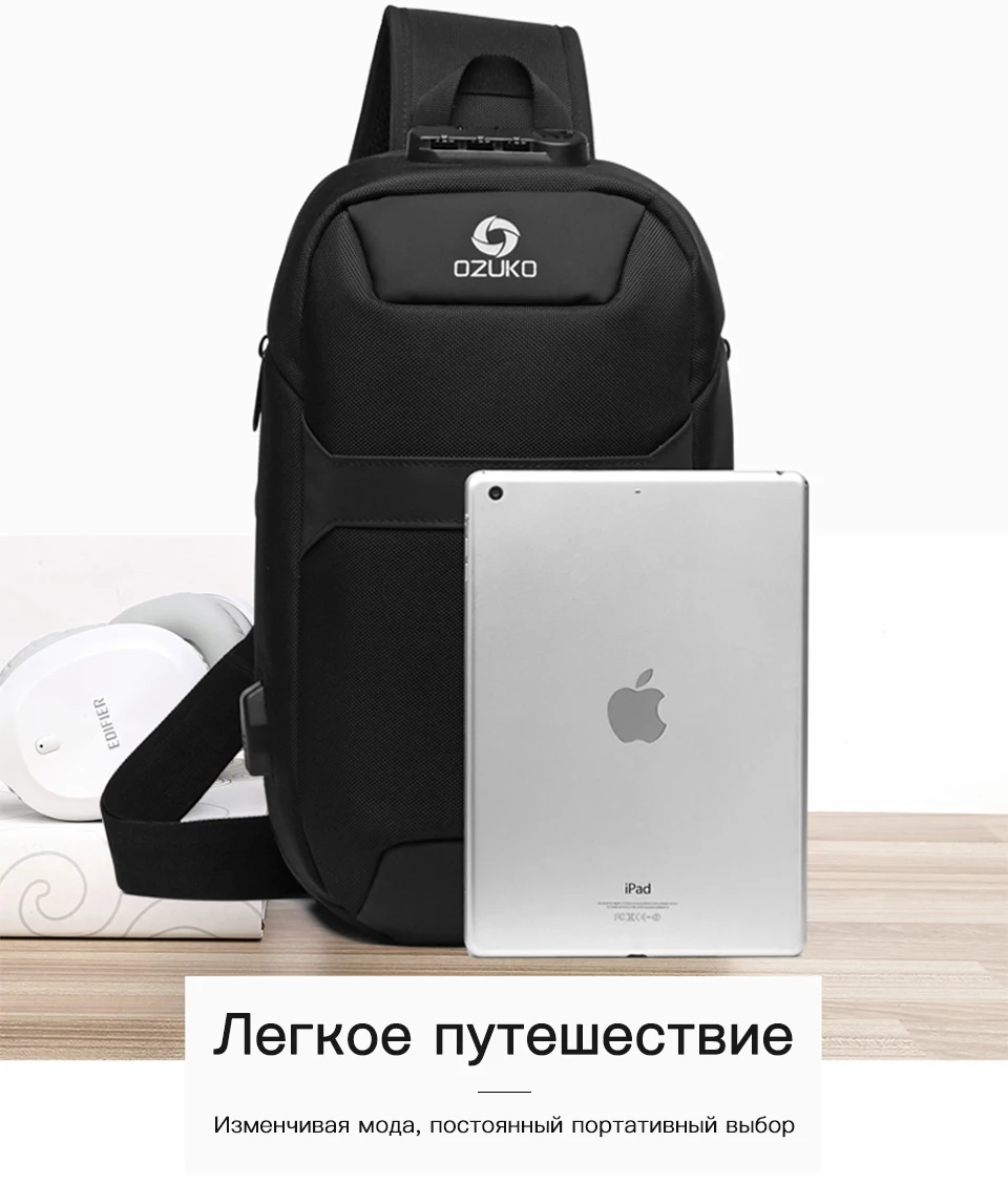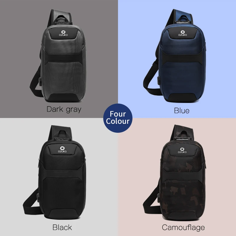 Сумка-мессенджер OZUKO Мужская, водонепроницаемая, с выходом USB для зарядки, с защитой от кражи