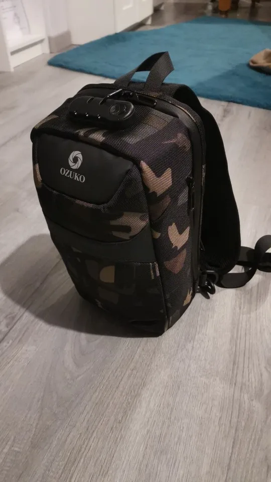 Сумка упакована хорошо. Все целое. Замки работают плавно и защищены от дождя. Материал плотный. Кодовый замок, настраивать легко. Нужно отодвинув замок в положение открыто и удерживая, выставить нужный код, потом отпустить. Общее впечатление от сумки, качественная, фирменная. Спасибо ozuko! Спасибо AliExpress!