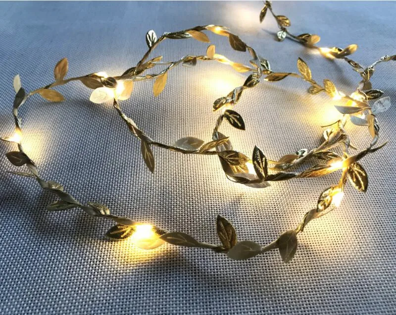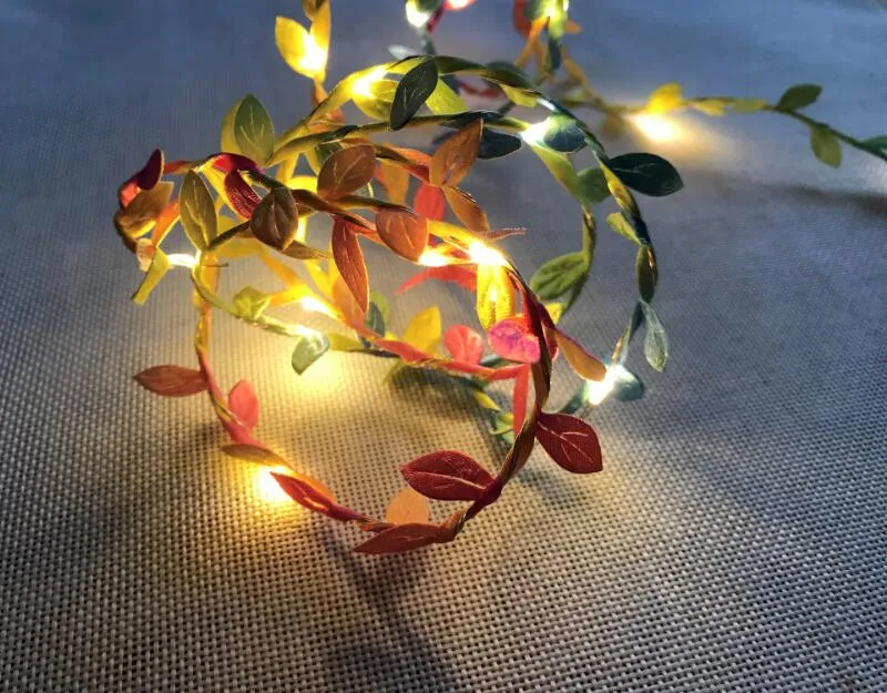 Уличная сказочная гирлянда 5 м, 50 светодиодов, гирлянда с листьями, работает на батарейках, для украшения свадьбы, праздника, вечеринки, события