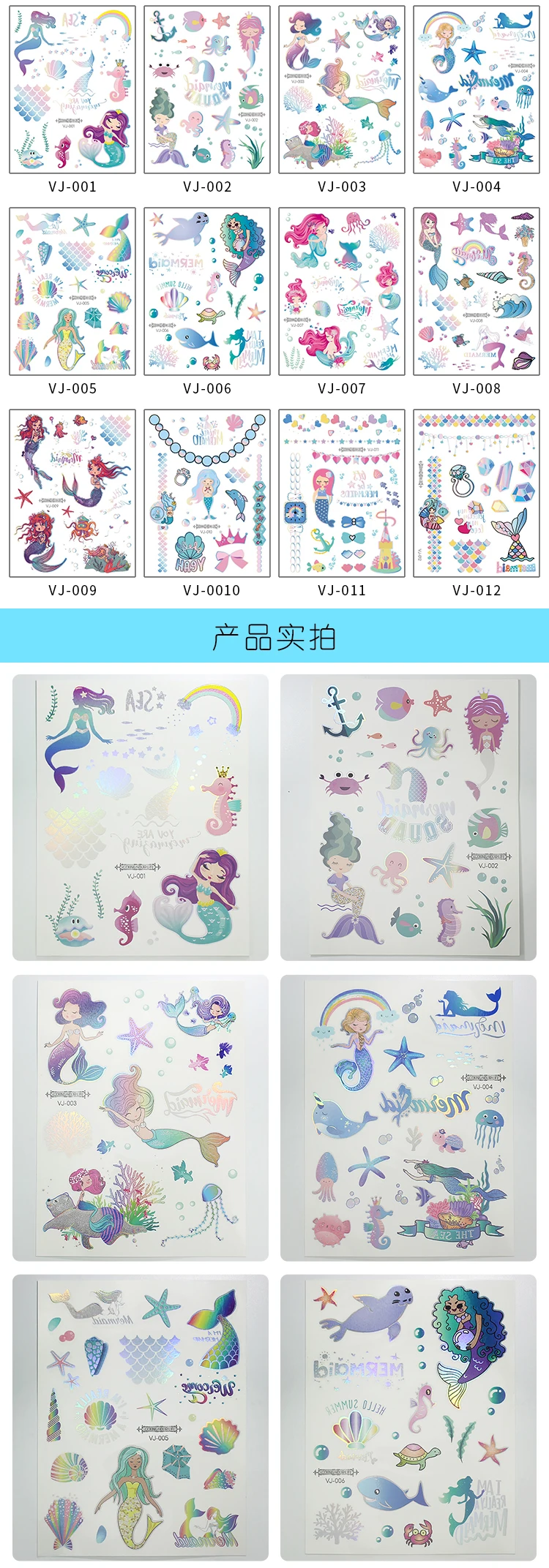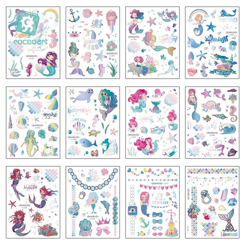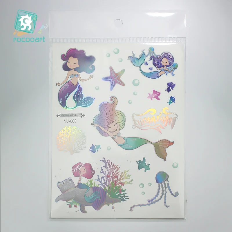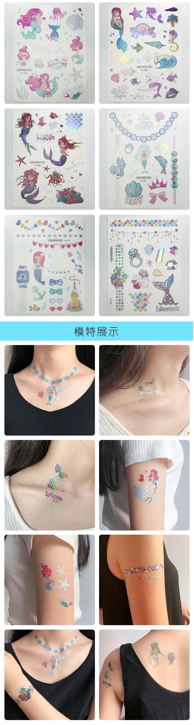 Женская Лазерная тату-наклейка Rocooart, блестящая Татуировка Русалочки для макияжа, боди-арт, искусственная татуировка, ожерелье, водонепроницаемая флеш-тату