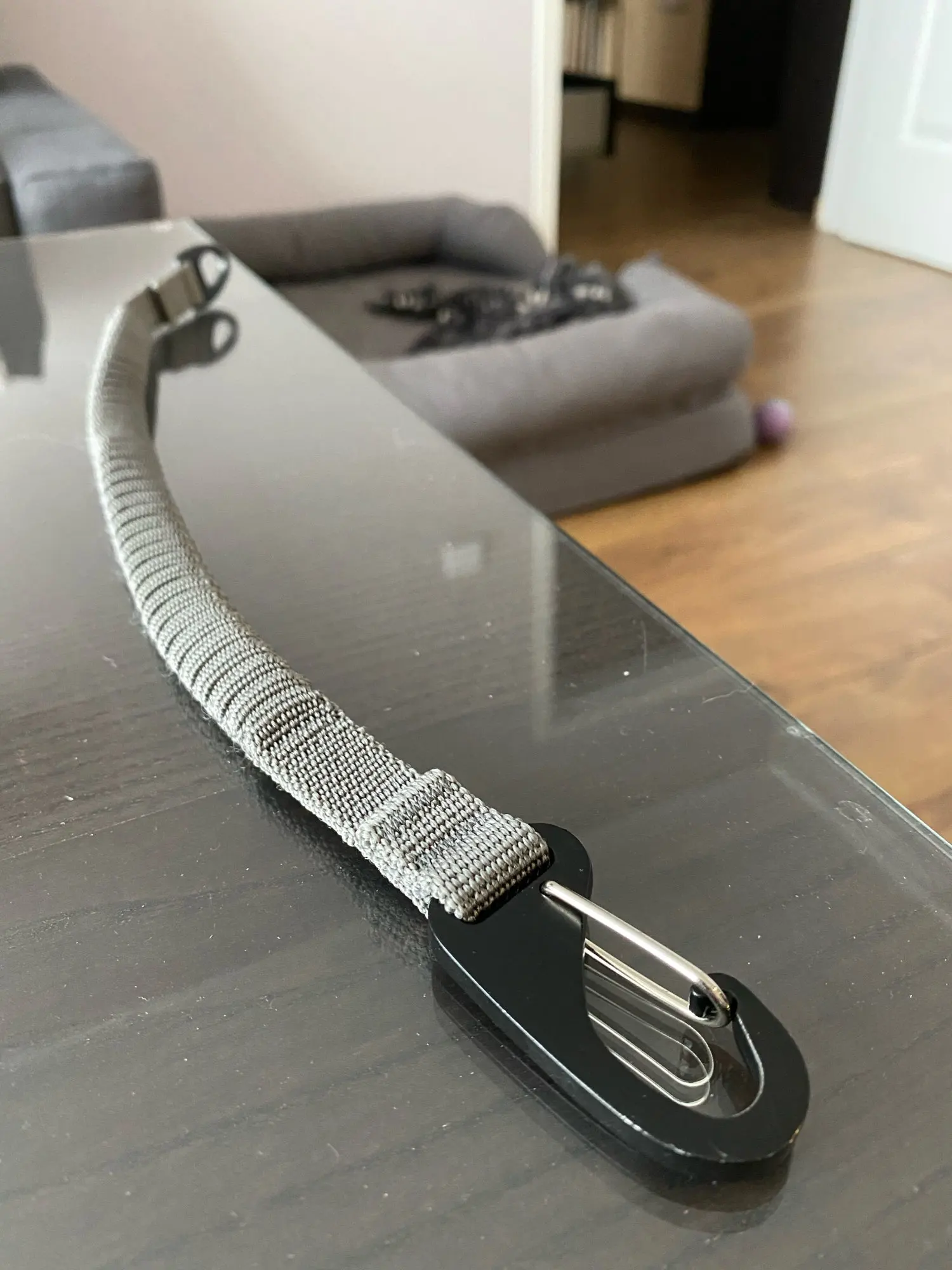 доставлено очень быстро. эластичный, с удобным большим карабином.