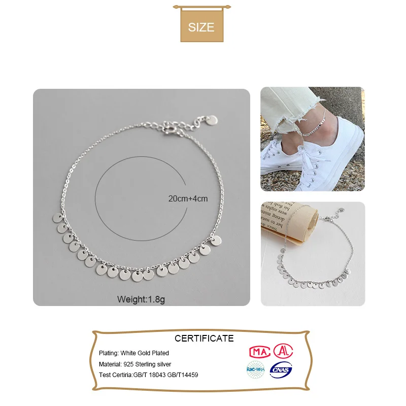 Женский ножной браслет с подвеской trustdave, серебро 925 пробы, ювелирные украшения для подарка лучшему другу, длиной 20 см, DS2317